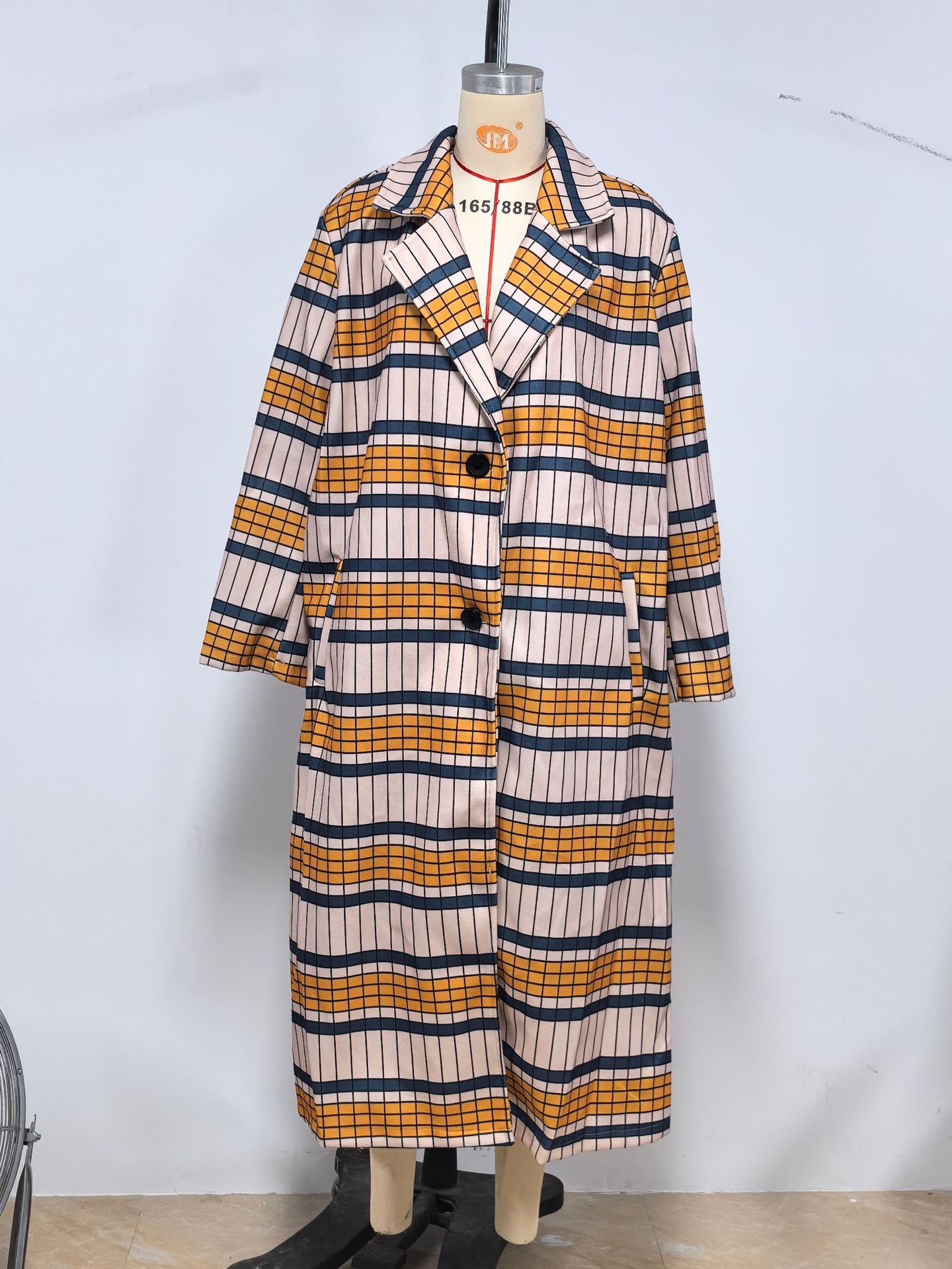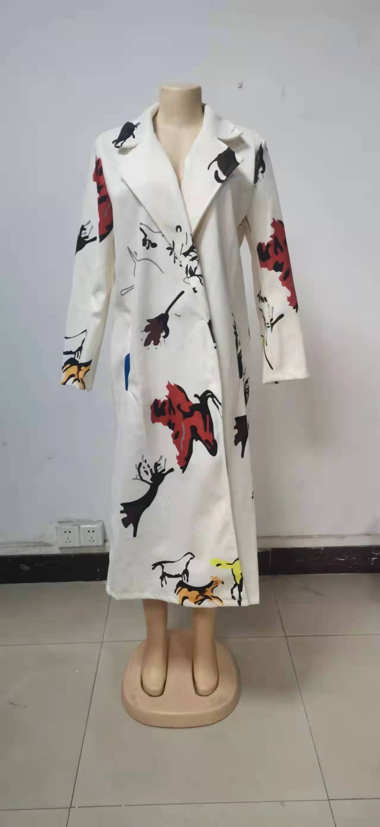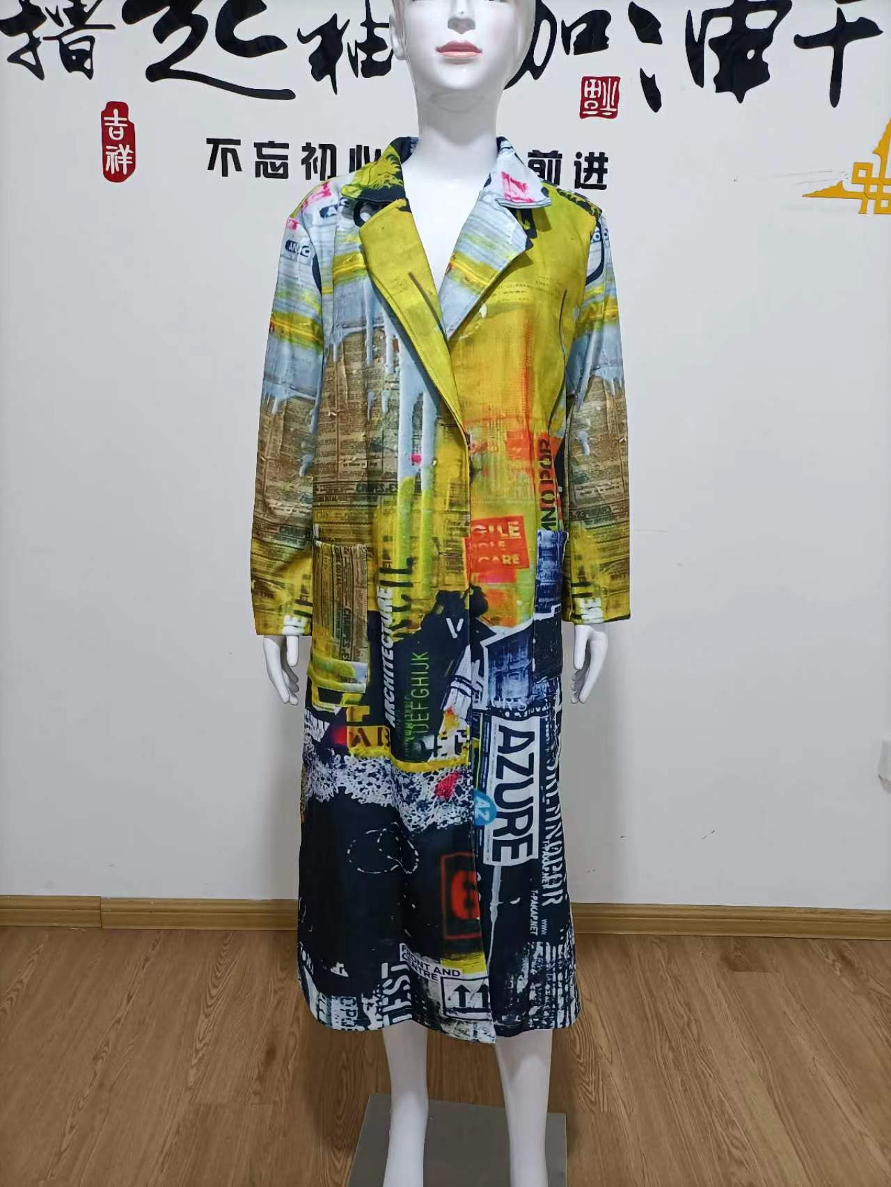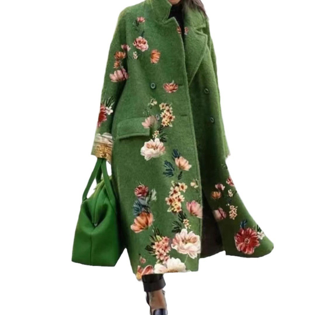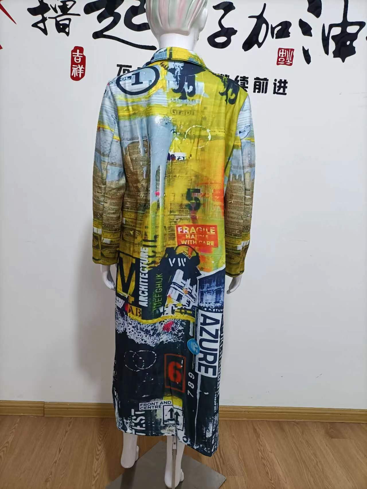 M8753 새로운 2025 유럽과 미국의 가을 국경 간 여성 의류 아마존 긴팔 라펠 코트 프린트 모직 롱 코트