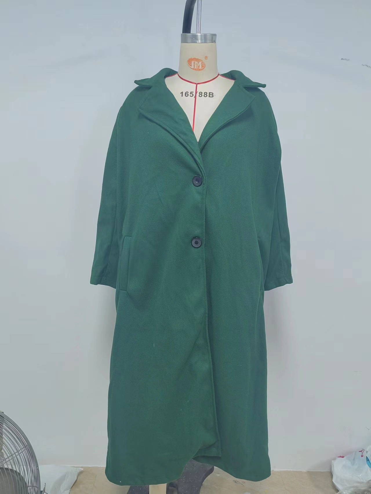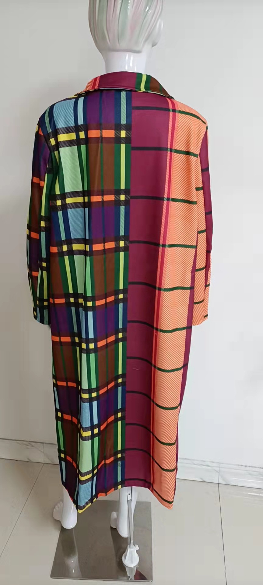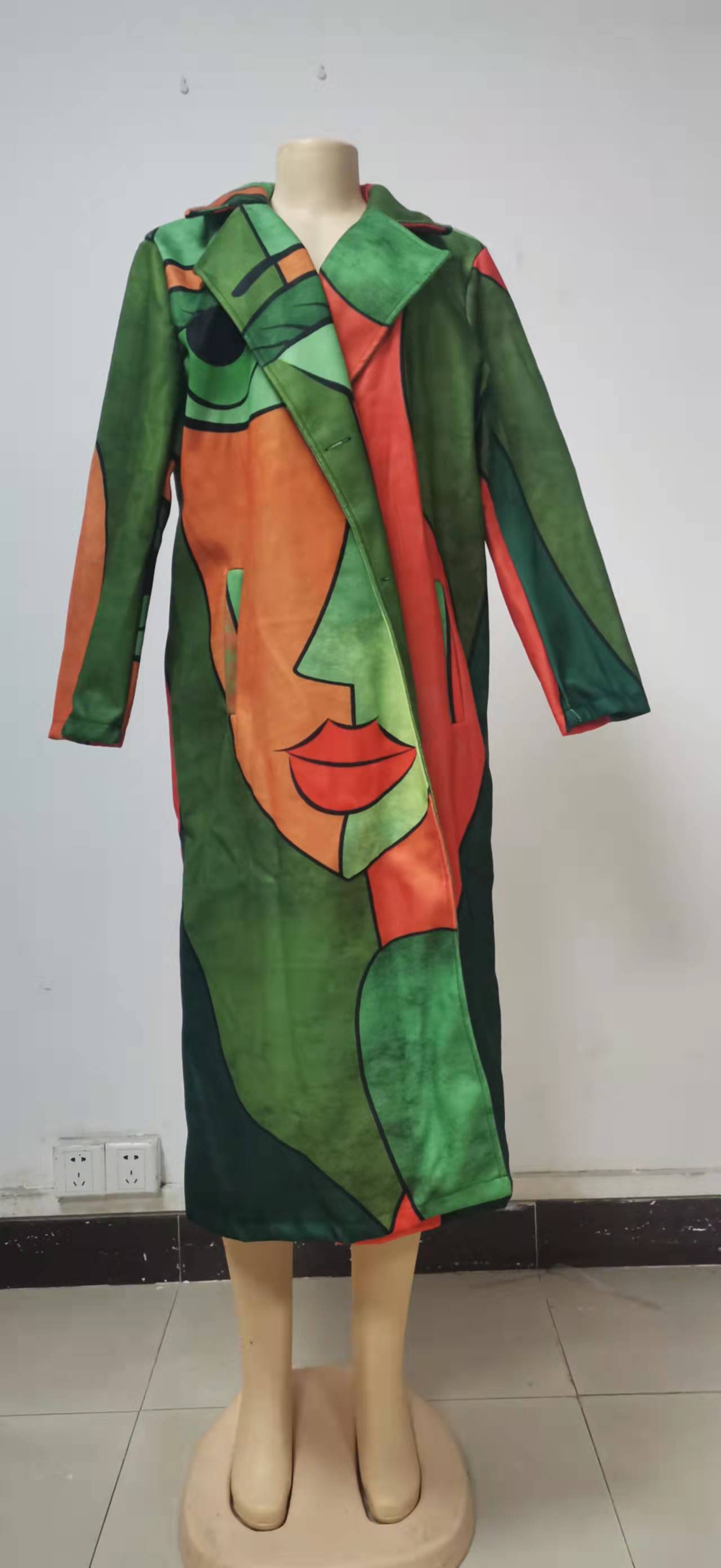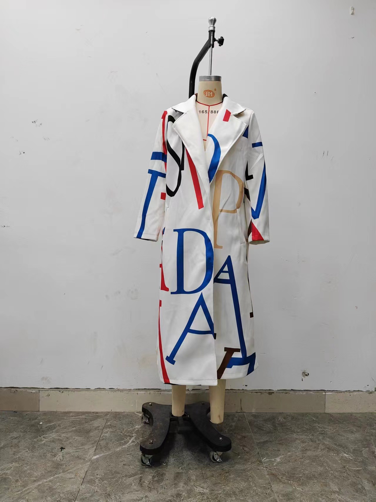 M8753 새로운 2025 유럽과 미국의 가을 국경 간 여성 의류 아마존 긴팔 라펠 코트 프린트 모직 롱 코트