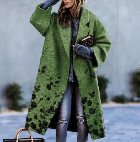 M8753 새로운 2025 유럽과 미국의 가을 국경 간 여성 의류 아마존 긴팔 라펠 코트 프린트 모직 롱 코트스토어 가기