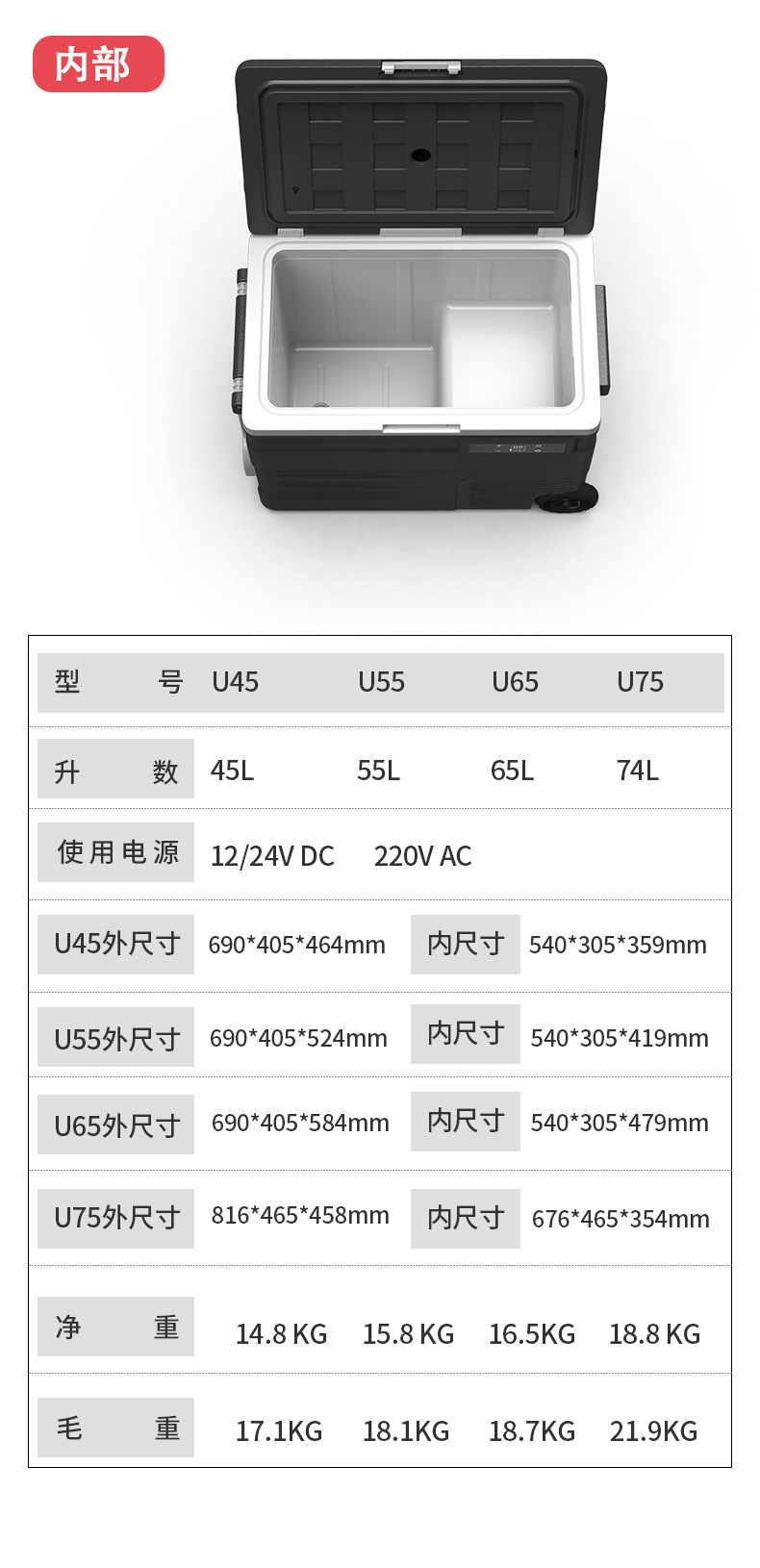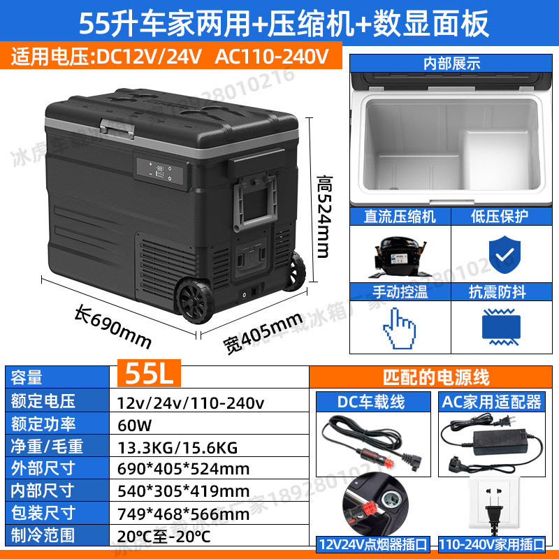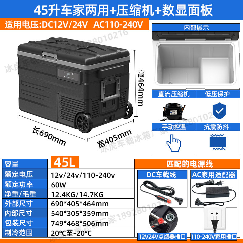 얼음 호랑이 압축기 자동차 냉장고 냉동 45/55L 자동차 이중 사용 12v24v 작은 냉동 국경스토어 가기