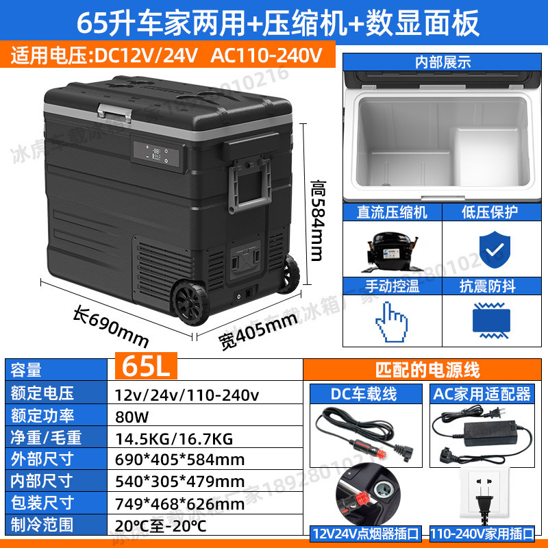 얼음 호랑이 압축기 자동차 냉장고 냉동 45/55L 자동차 이중 사용 12v24v 작은 냉동 국경