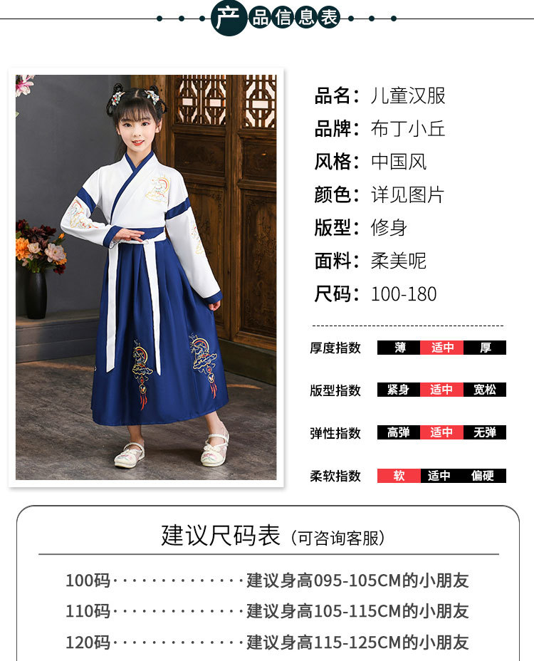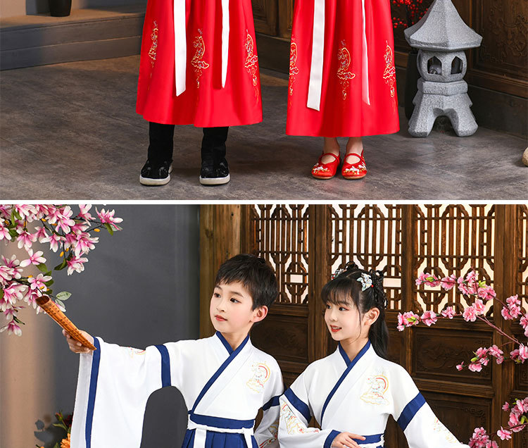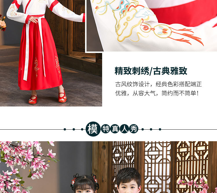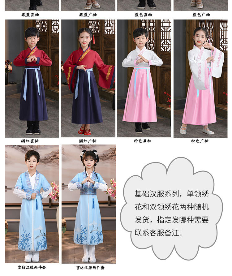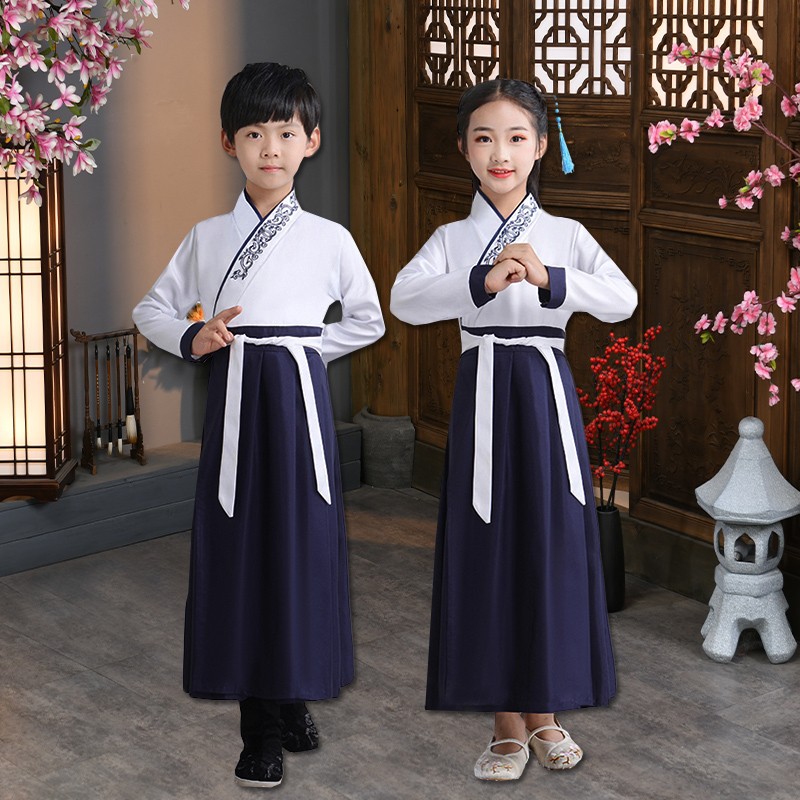 어린이 중국어 연구 한푸 고대 의류 소년 소녀 3 자 Sutra Di Zi Gui Shu 아동 의류 초등학생 필기 행사 공연 의류