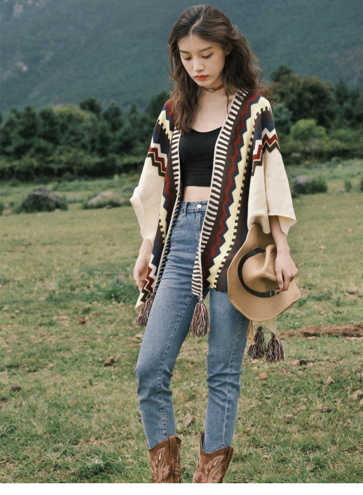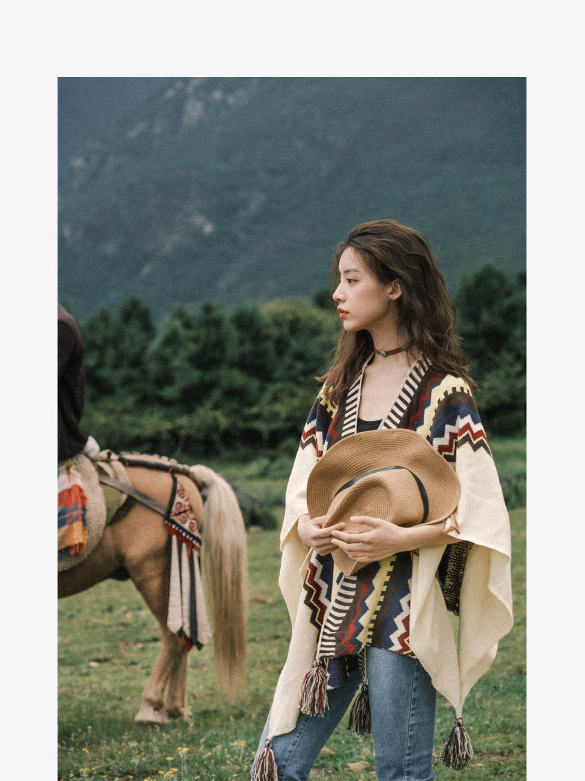 보헤미안 에스닉 스타일 숄 케이프 여성 내부 몽골 그레이트 노스 웨스트 관광 초원 여행복 여름 케이프