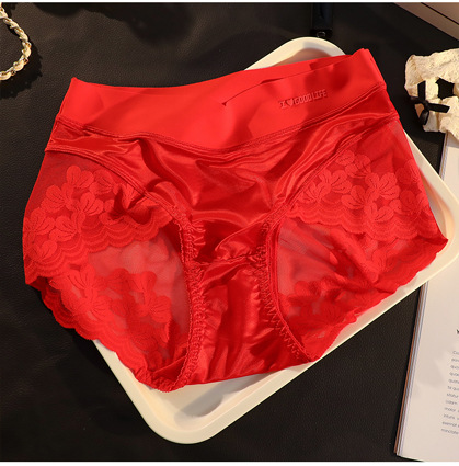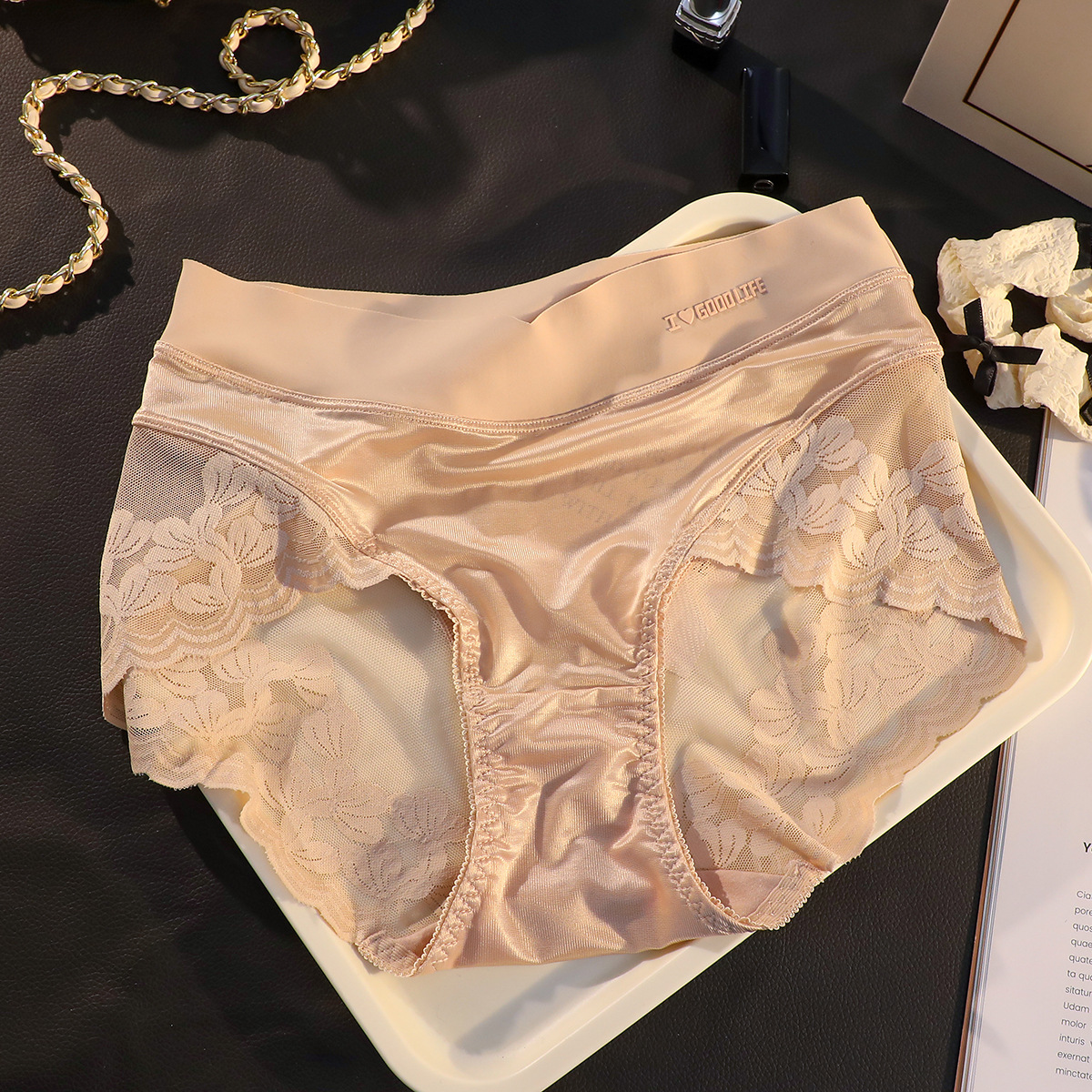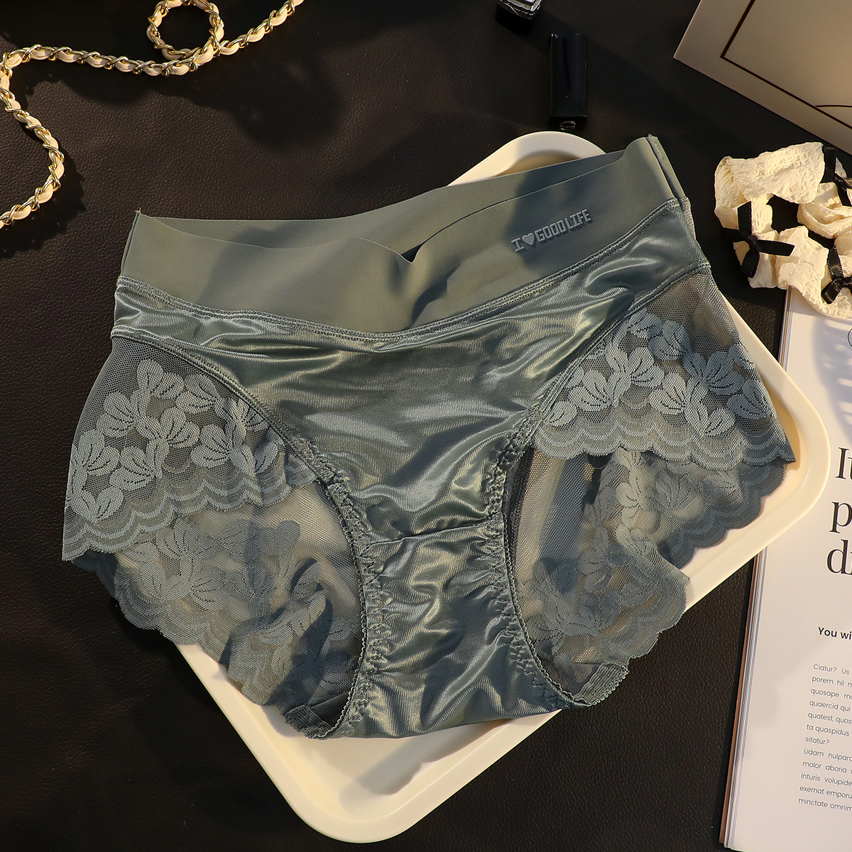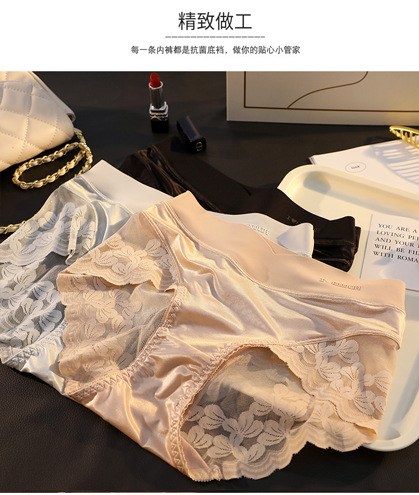 하이 엔드 라이트 럭셔리 실크 슬라이드 새틴 섹시 레이스 여성 속옷 통기성 피부 친화적 인 중간 허리 추적 엉덩이 팬티