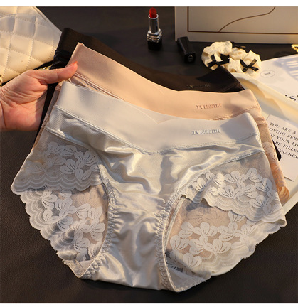 하이 엔드 라이트 럭셔리 실크 슬라이드 새틴 섹시 레이스 여성 속옷 통기성 피부 친화적 인 중간 허리 추적 엉덩이 팬티스토어 가기