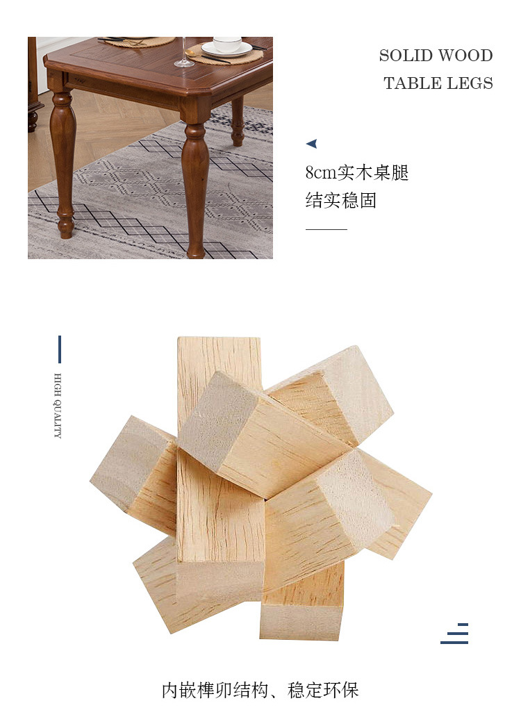 직사각형 조합 작은 가정용 식당 의자 단단한 나무 작은 아파트 식탁 광장 만들기 식탁 커피 식탁 복고풍 유럽