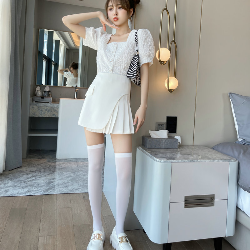 여성용 종아리 양말, 흰색 반하이 양말, 여름용 얇은 일본식 단색 스타킹, 광다리 쉐이핑 스타킹스토어 가기