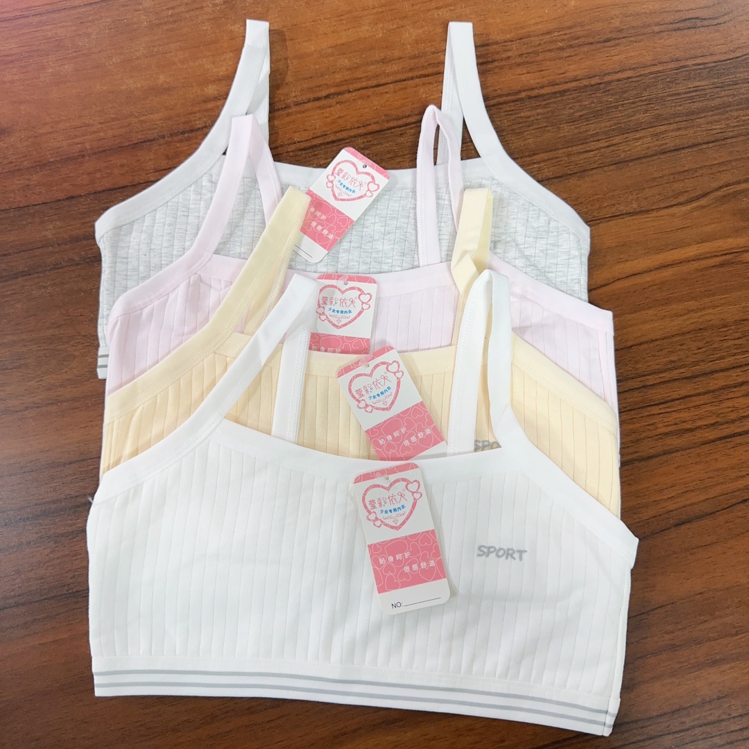 6245 면 작은 어깨 끈 여아 조끼 초등학생 브래지어 편안한 땀 흡수 스포츠 여아 속옷
