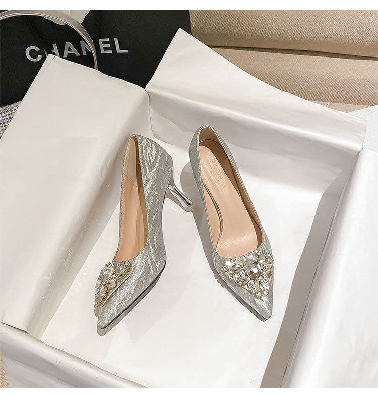 316-A133 프렌치 포인트 하이힐 여성용 스틸레토 실버 들러리 웨딩 신발 신부 신발 스몰 사이즈 플러스 사이즈 플러스 지방스토어 가기