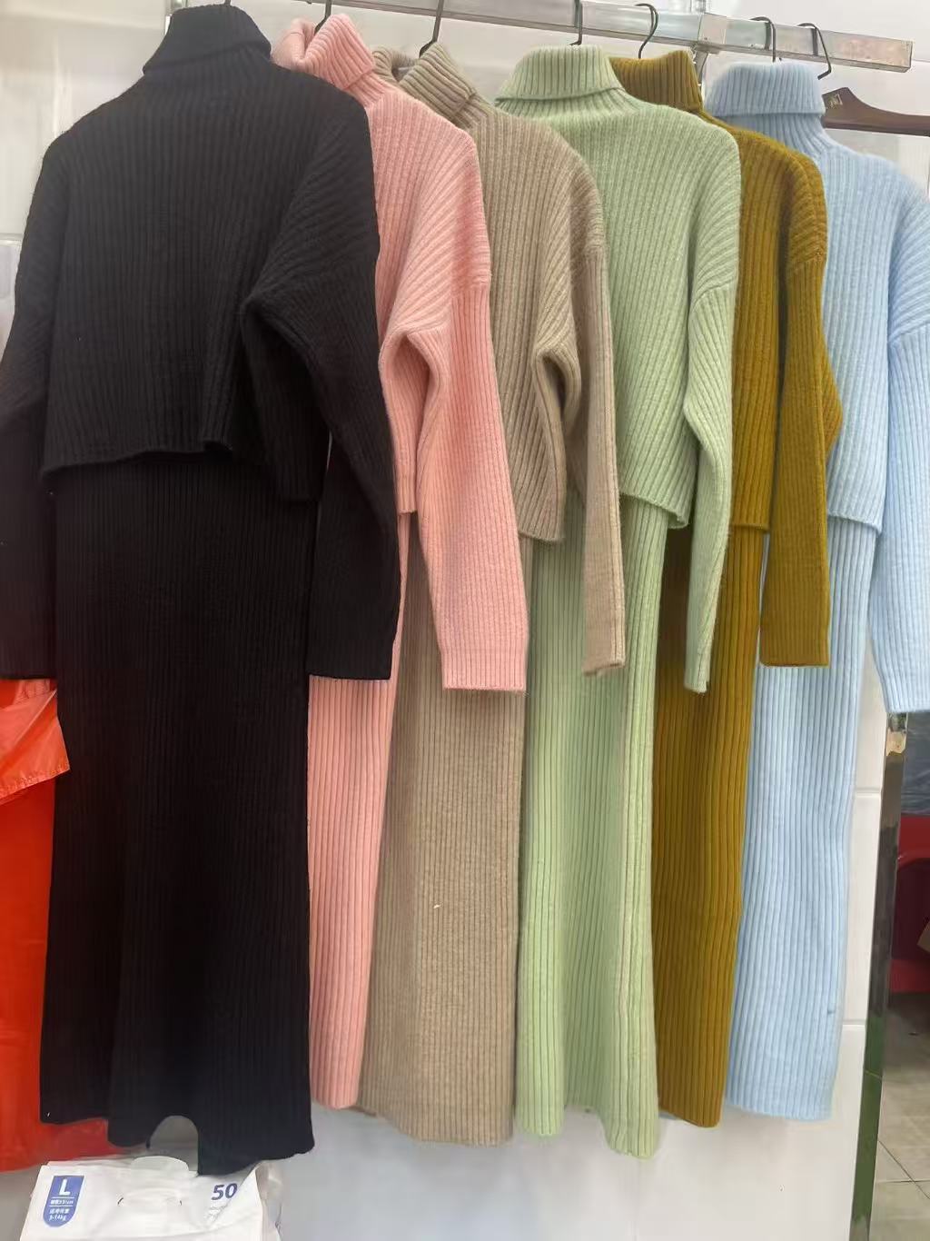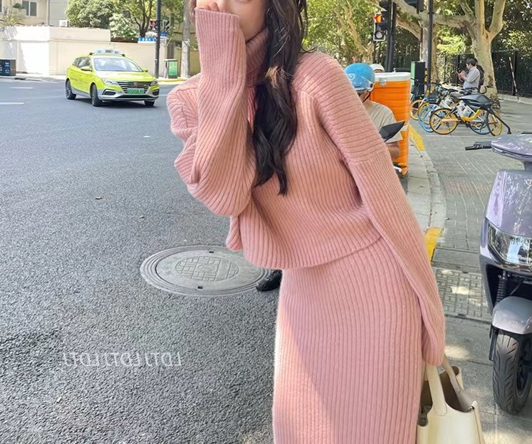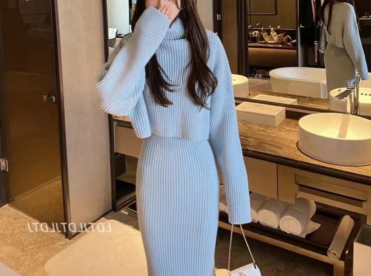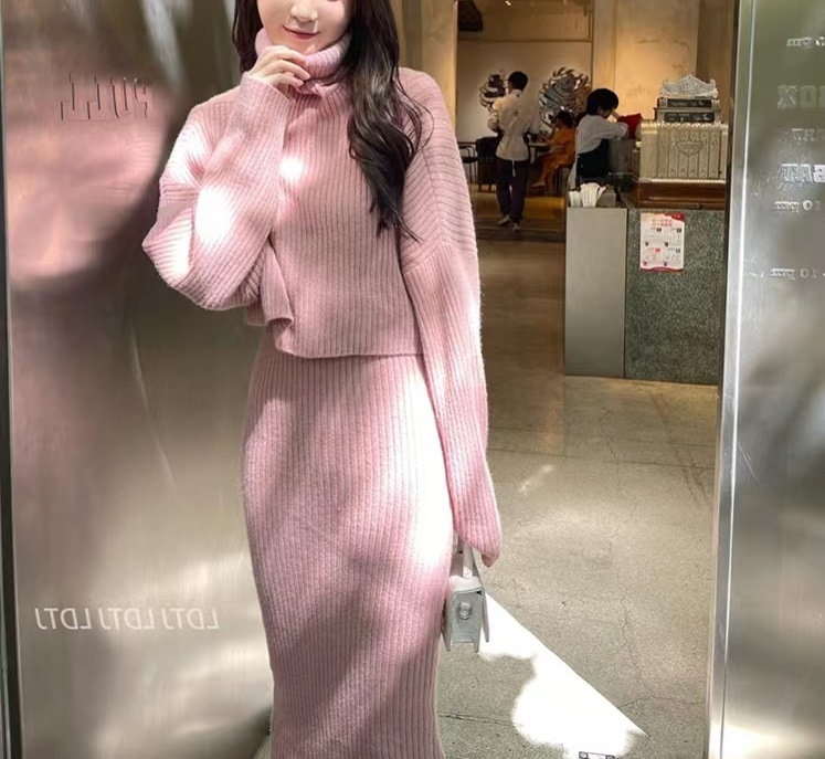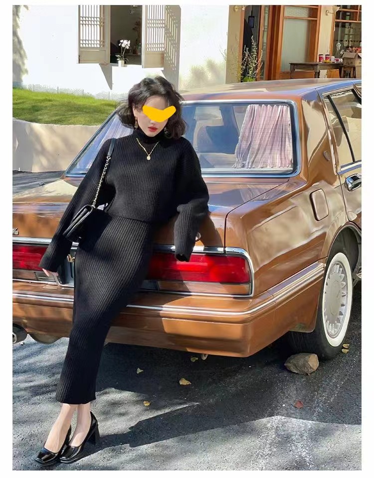 명사님 스타일 패션 고급 니트 스웨터 원피스 투피스 세트, 샤넬 스타일 오피스룩 여성 가을 의류스토어 가기
