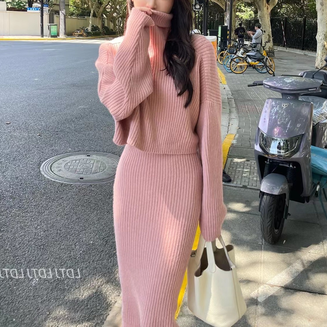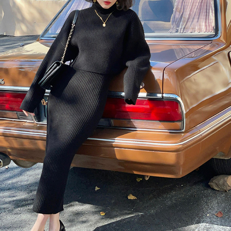 명사님 스타일 패션 고급 니트 스웨터 원피스 투피스 세트, 샤넬 스타일 오피스룩 여성 가을 의류