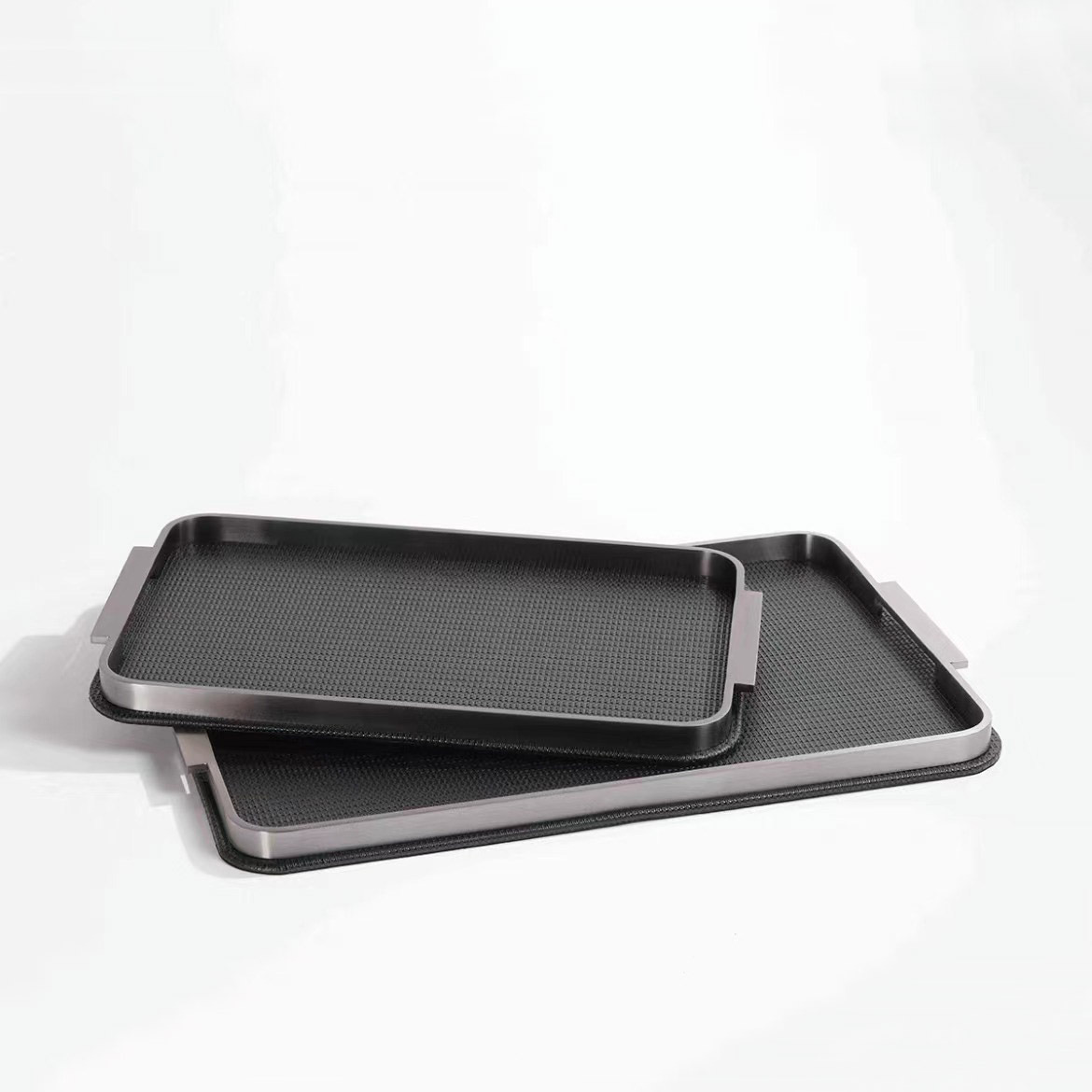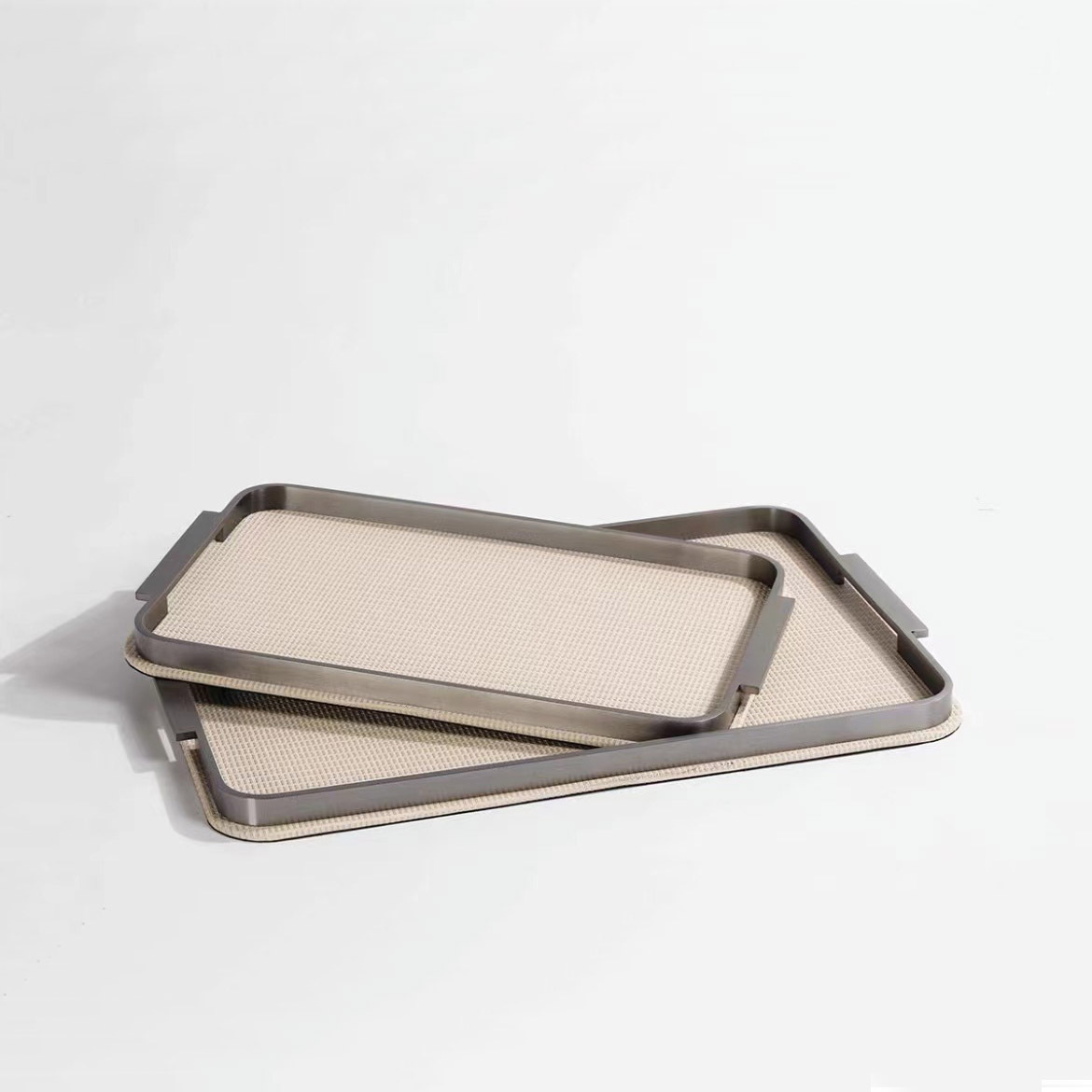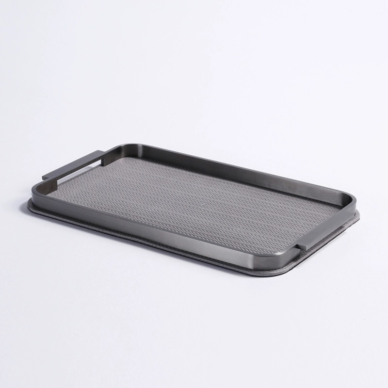 가벼운 고급 현대 짠 가죽 금속 트레이 홈 부드러운 거실 커피 테이블 저장 플레이트 욕실 아로마 테라피 플레이트 장식품