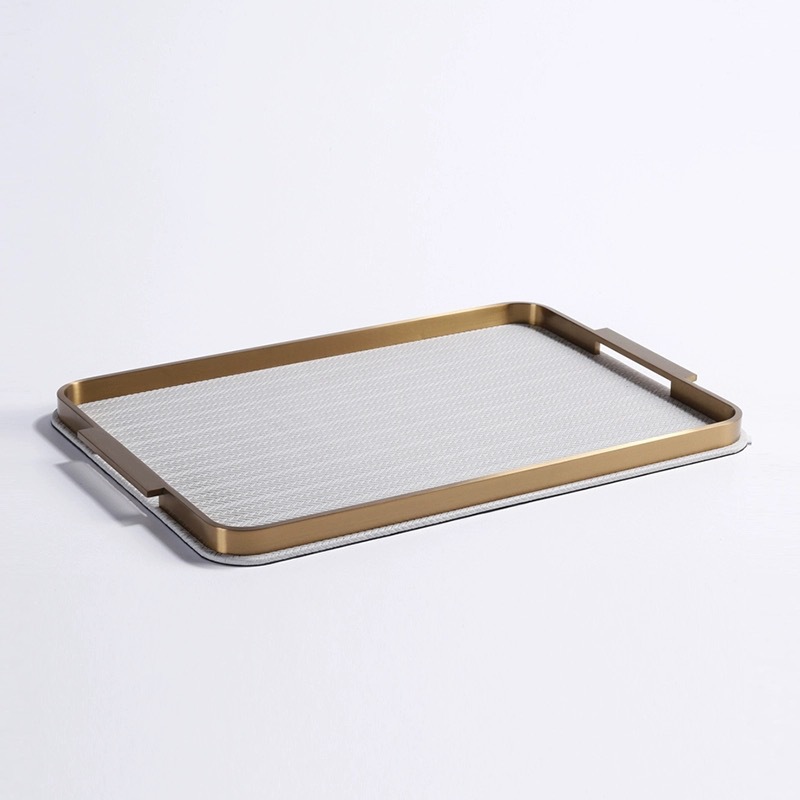 가벼운 고급 현대 짠 가죽 금속 트레이 홈 부드러운 거실 커피 테이블 저장 플레이트 욕실 아로마 테라피 플레이트 장식품스토어 가기