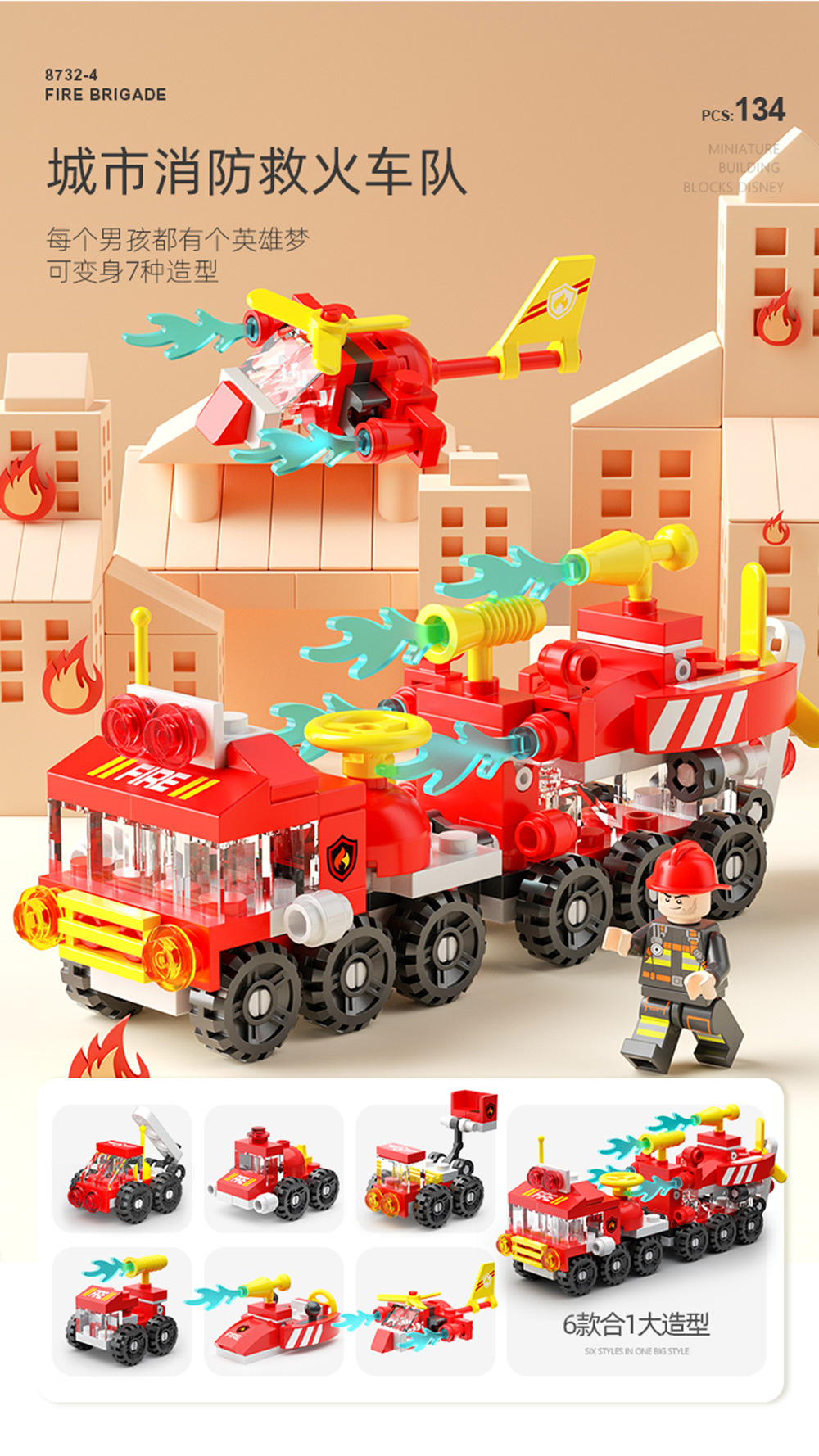• [컬러 박스] 8732-4A [산림 소방대] 6 in 1*134 입자 [피더]