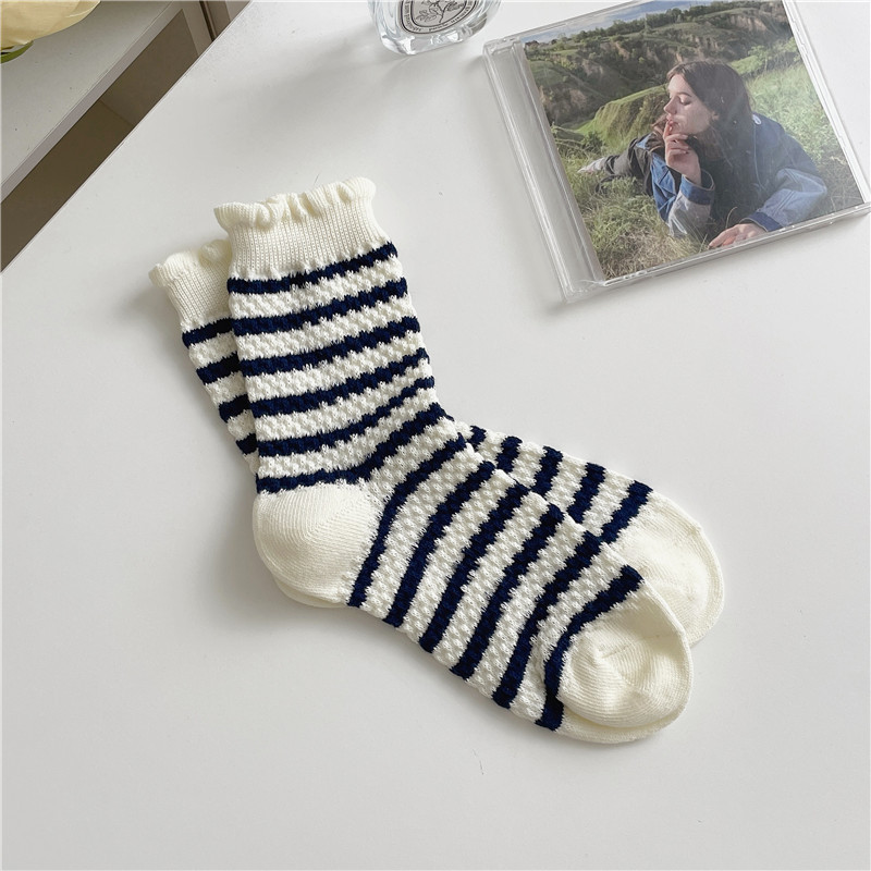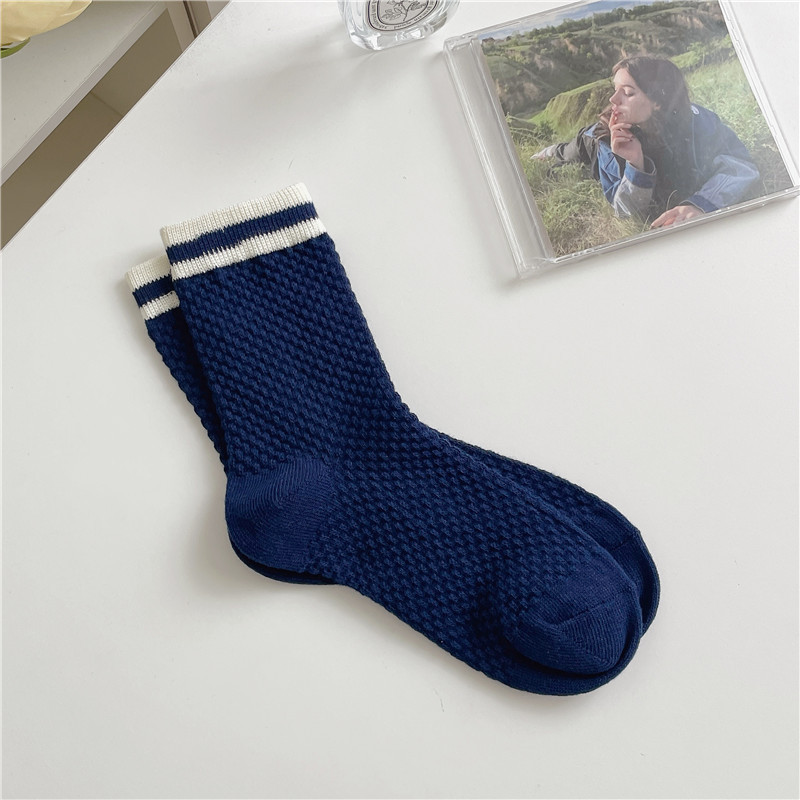 일본식 흑백 스트라이프 중간 길이 양말 복고풍 질감 감각 버블 격자 양말 여성용 로리타 여성 양말 심플 스택 양말스토어 가기
