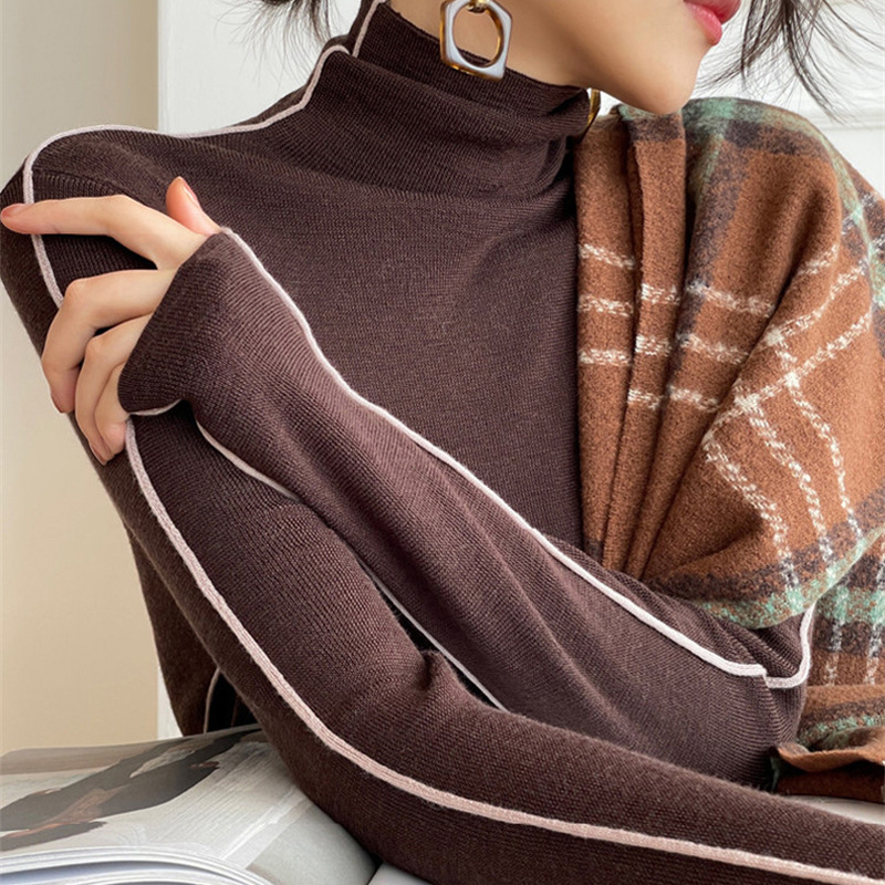 하이 칼라베이스 셔츠 여성용 가을 겨울 코트 모피 내부 두꺼운 독일 벨벳 파일 칼라 탑 고급 스웨터