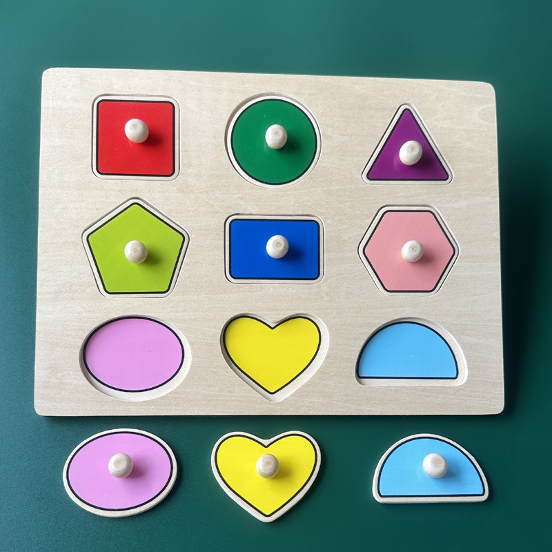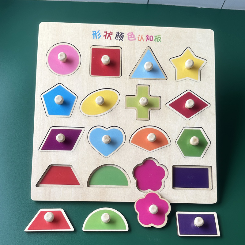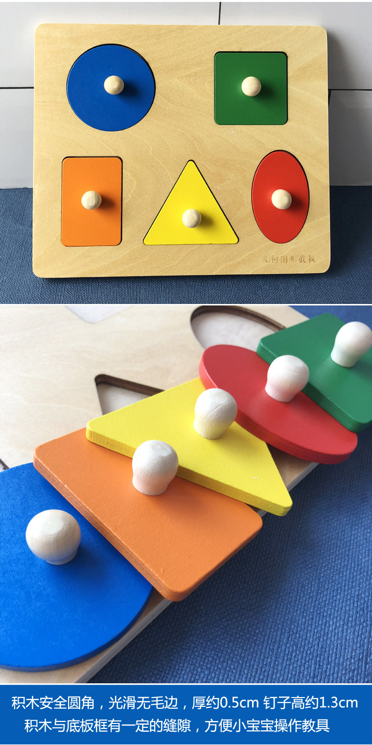 정품 어린이 조기 교육 나무 기하학적 그림 손 잡는 보드 몬테소리 교육 보조 퍼즐 패널 모양 교육 완구스토어 가기