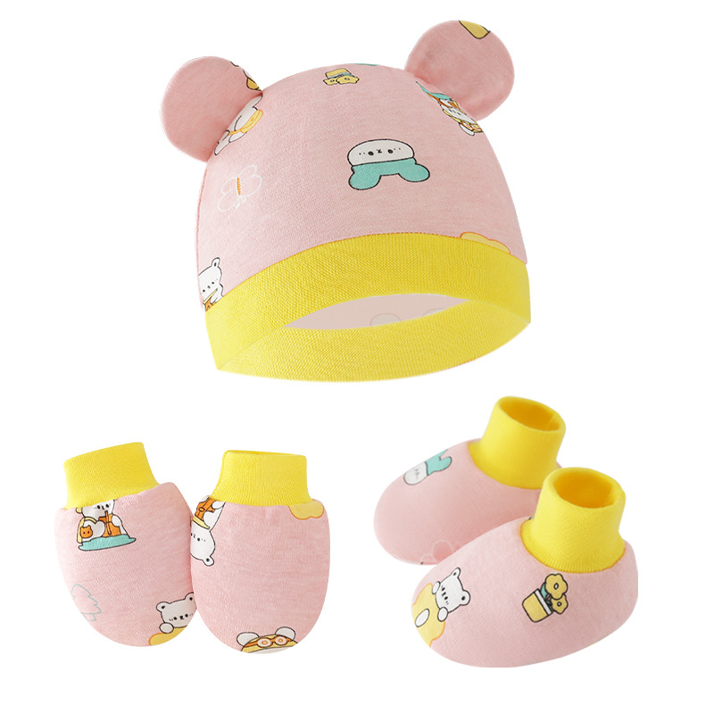 대외 무역 유럽과 미국 신생아 모자 긁힘 방지 장갑 발 커버 아기 모자 아기 모자 신생아 태아 모자 보호 장갑