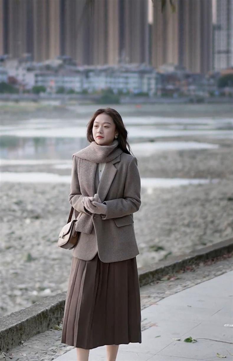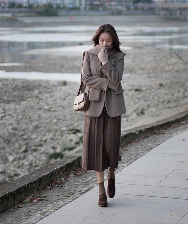 YT82361 한국 드라마 리치 레이디스 고급 샤넬 모직 코트 투피스 세트 세트 착용
