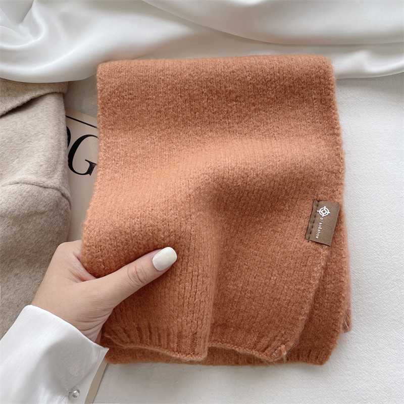 울 혼방 니트 솔리드 컬러 울 커플 작은 스카프 여자의 한국 스타일 두꺼운 따뜻한 모든 매치 스카프 남자의 가을과 겨울
