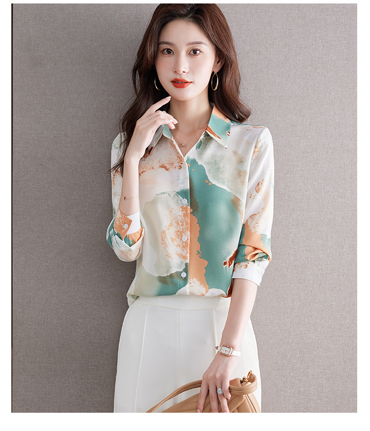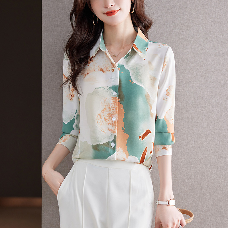다재다능한 새틴 셔츠 여성 2026 봄 가을 신상 디자인 감각 있는 틈새시장 루즈핏 슬림 긴팔 캐주얼 셔츠스토어 가기