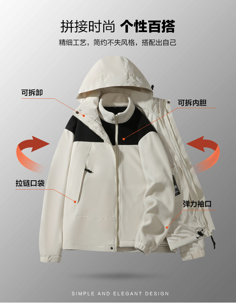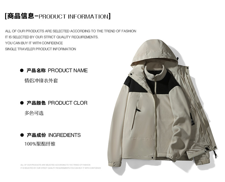 여성용 아웃도어 재킷 가을 겨울 트렌디 브랜드 3-in-1 고급 탈부착 방풍 방수 재킷 남성용 등산복