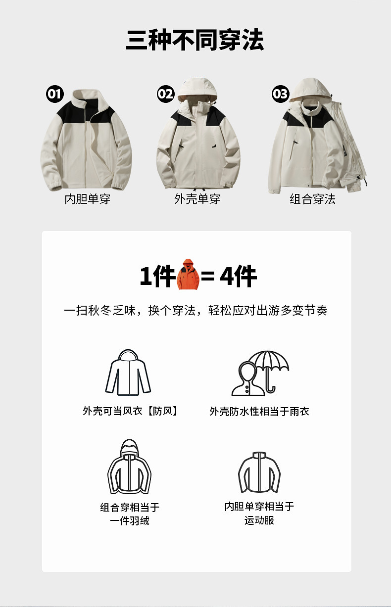 여성용 아웃도어 재킷 가을 겨울 트렌디 브랜드 3-in-1 고급 탈부착 방풍 방수 재킷 남성용 등산복스토어 가기