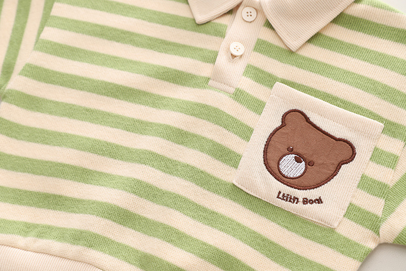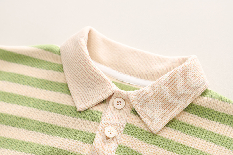 가을 2023 새로운 소년 줄무늬 옷깃 운동복 긴 소매 세트 남자의 아기 캐주얼 바지 머리를위한 투피스 세트스토어 가기