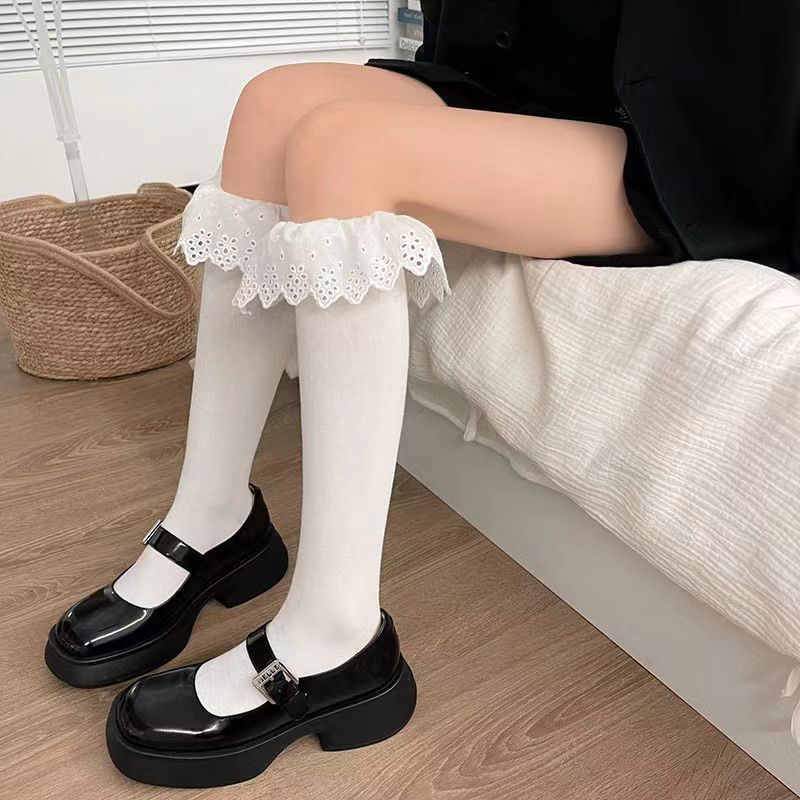 TikTok 폭발 레이스 실크 스타킹 어린이 중간 길이 스타킹 한국 그물 천 동대문 커프 스타킹 일본식 귀여운 jk 스타킹
