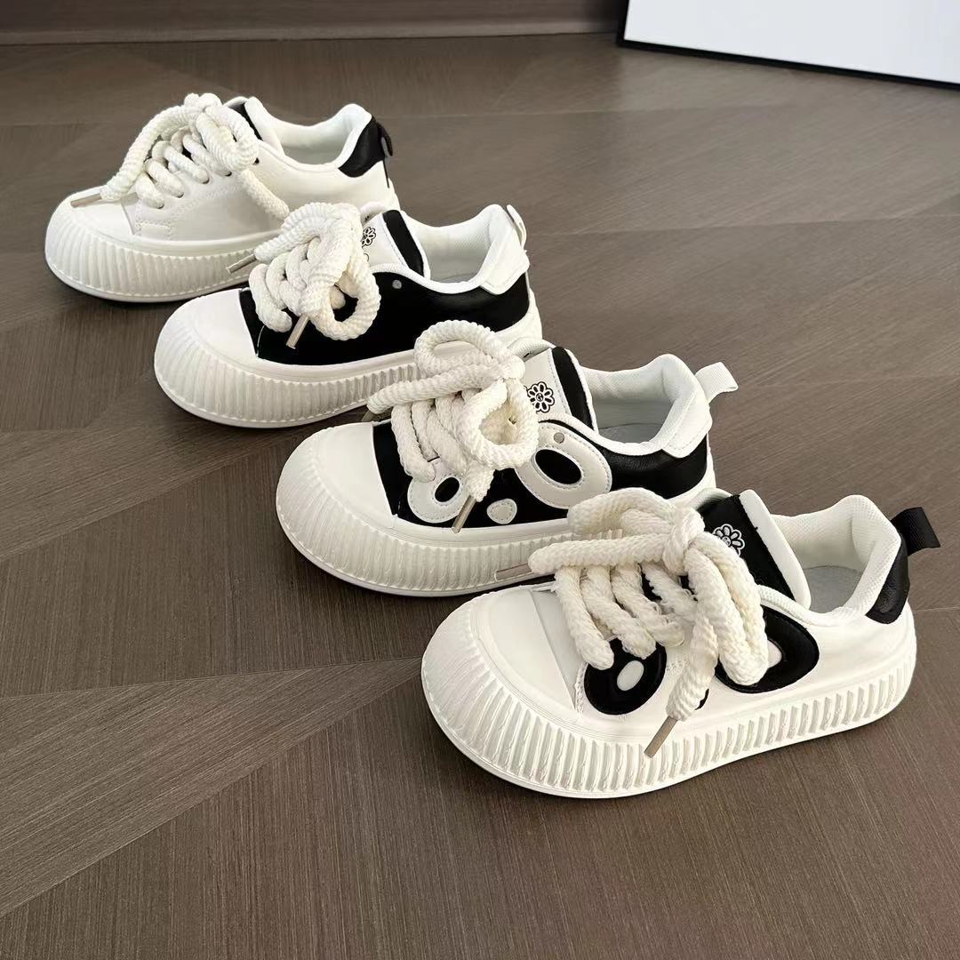 2024 새로운 두꺼운 밑창 캐주얼 신발 여성용 흑백 팬더 흰색 신발 여성용 ins 학생 유행 신발 부드러운 밑창스토어 가기