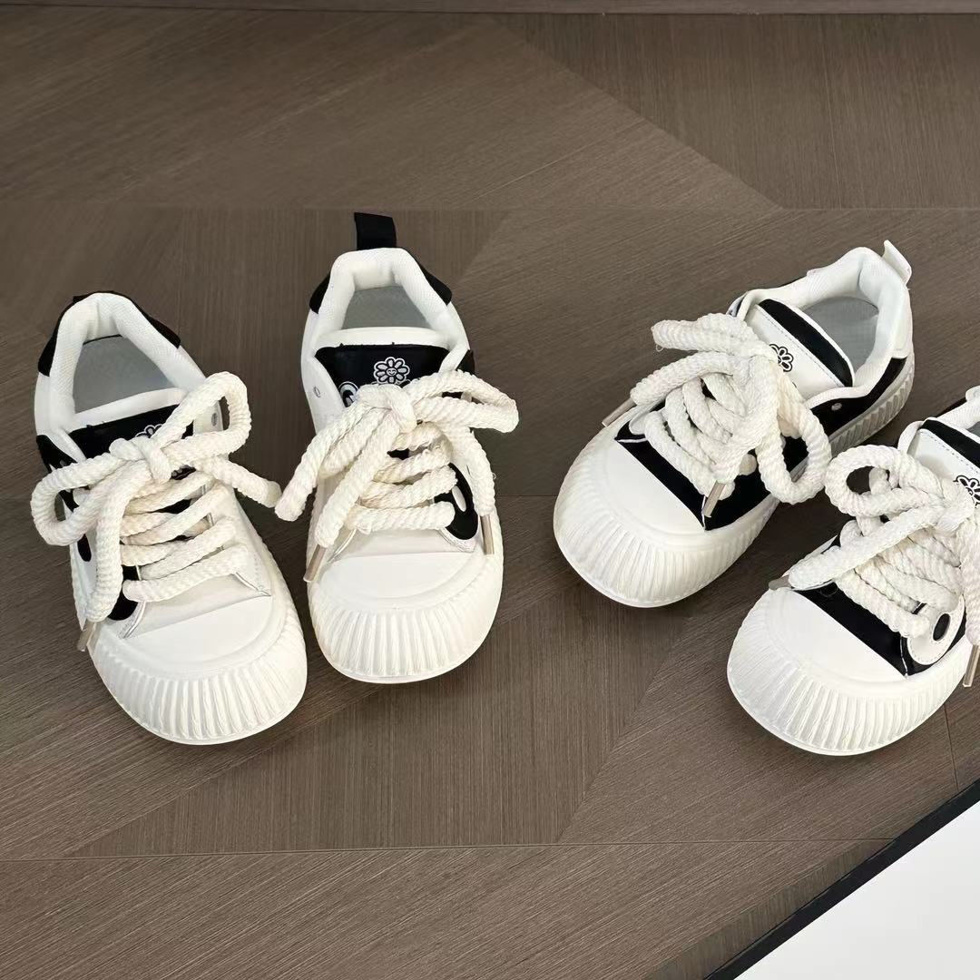 2024 새로운 두꺼운 밑창 캐주얼 신발 여성용 흑백 팬더 흰색 신발 여성용 ins 학생 유행 신발 부드러운 밑창
