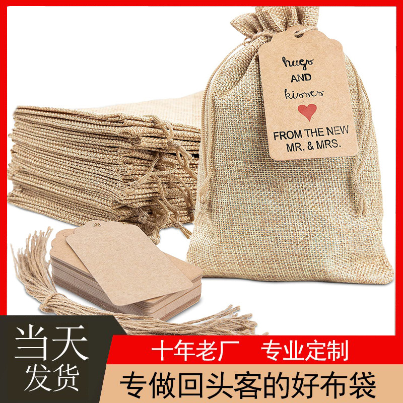 대마 컬러 린넨 가방 드로우 스트링 선물 가방 태그 선물 포장 가방 크로스 보더 파티 사탕 선물 가방