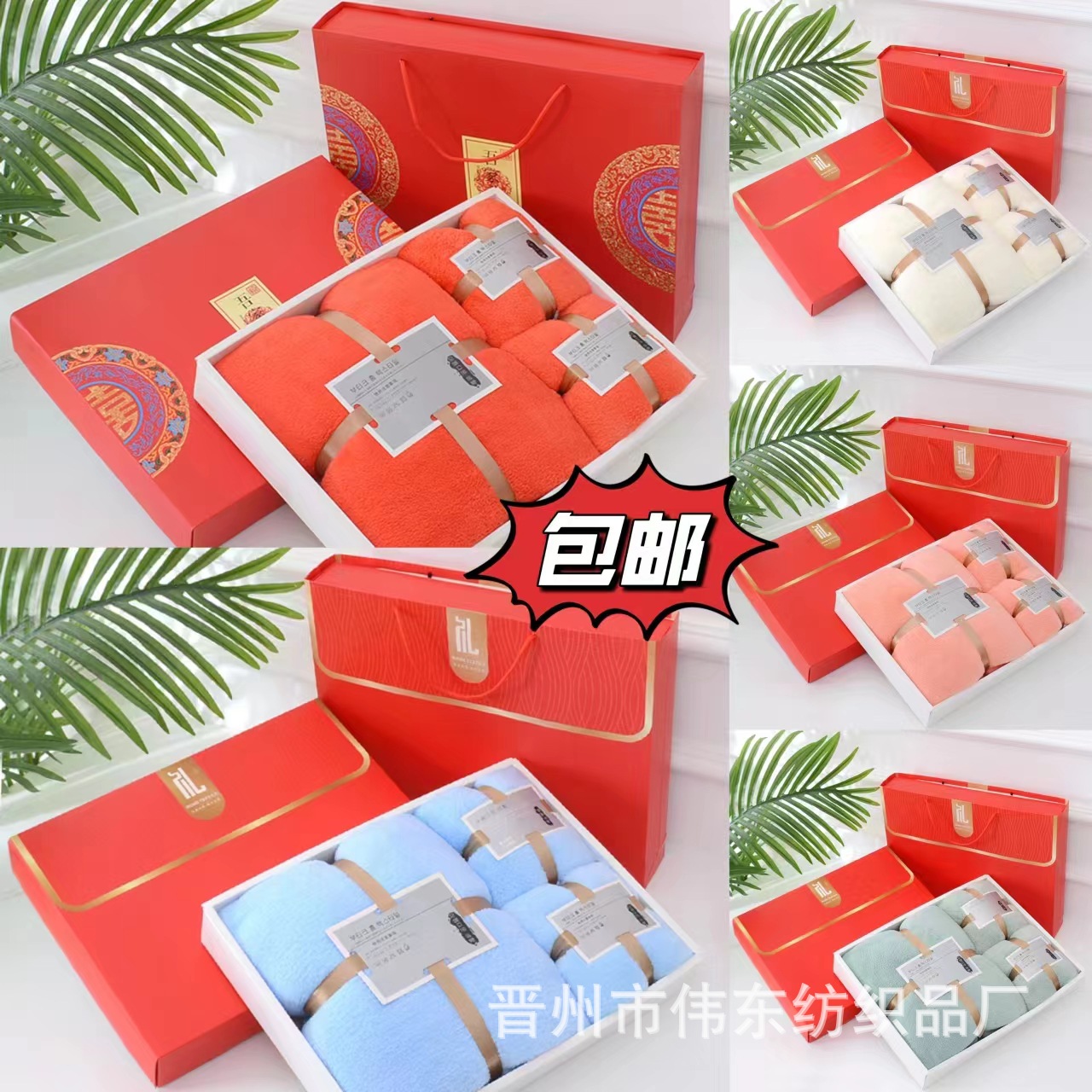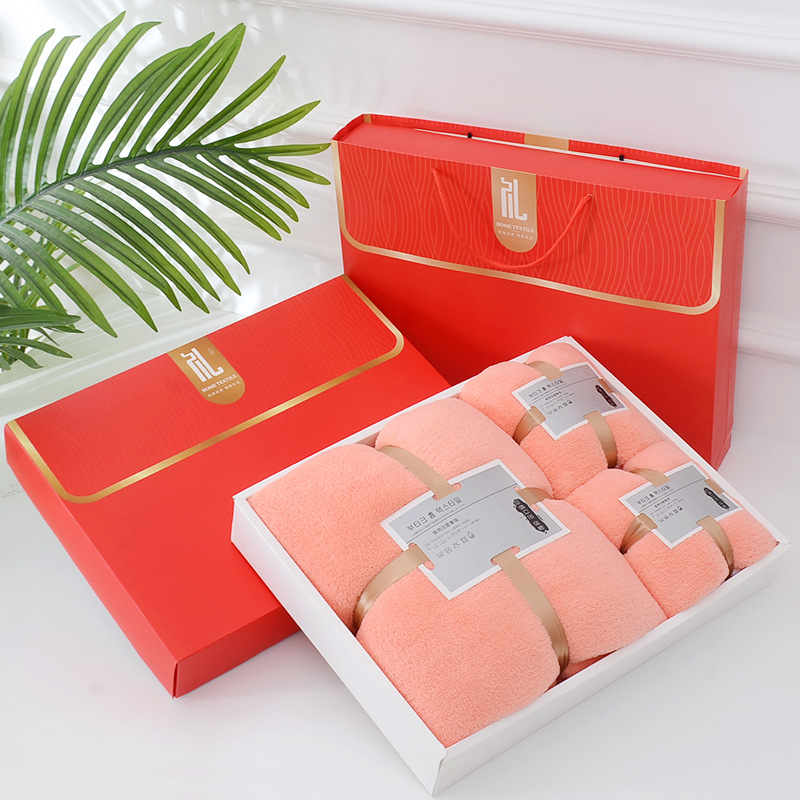 무료 배송 산호 양털 선물 상자 결혼 선물 수건 목욕 수건 선물 상자 3 종 세트 지원 크로스-보더 로고스토어 가기