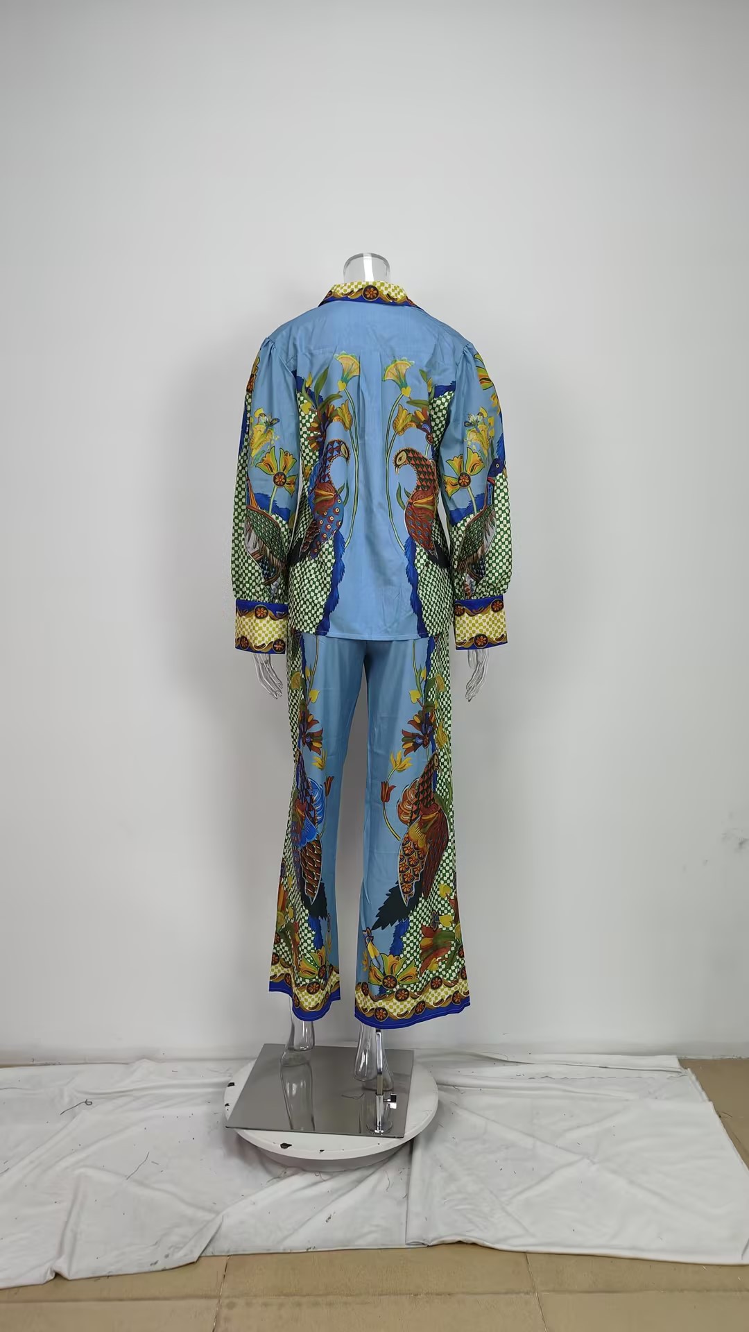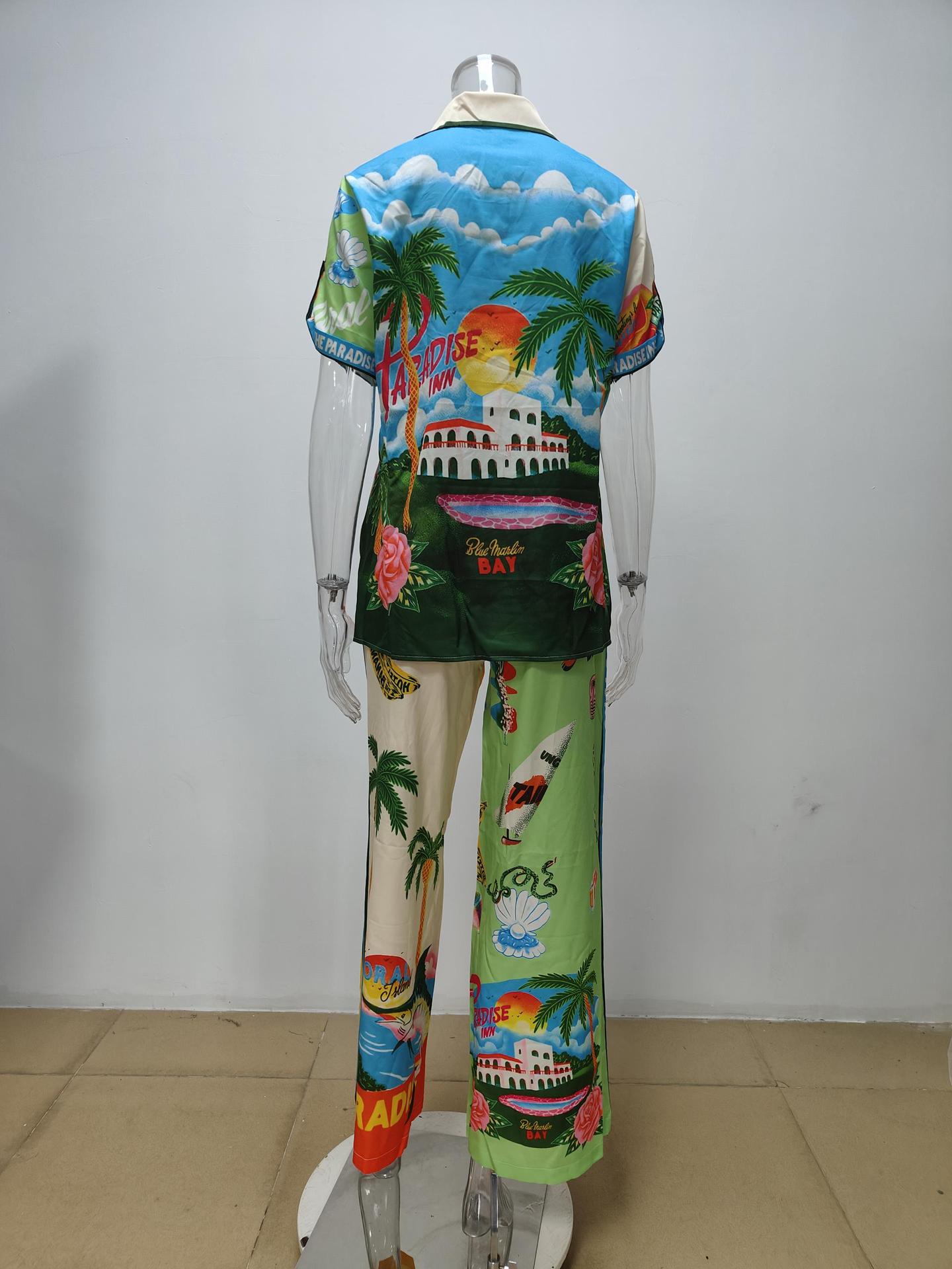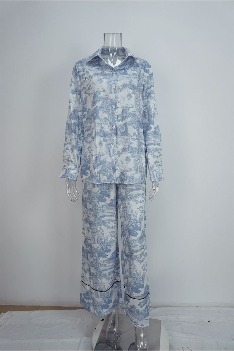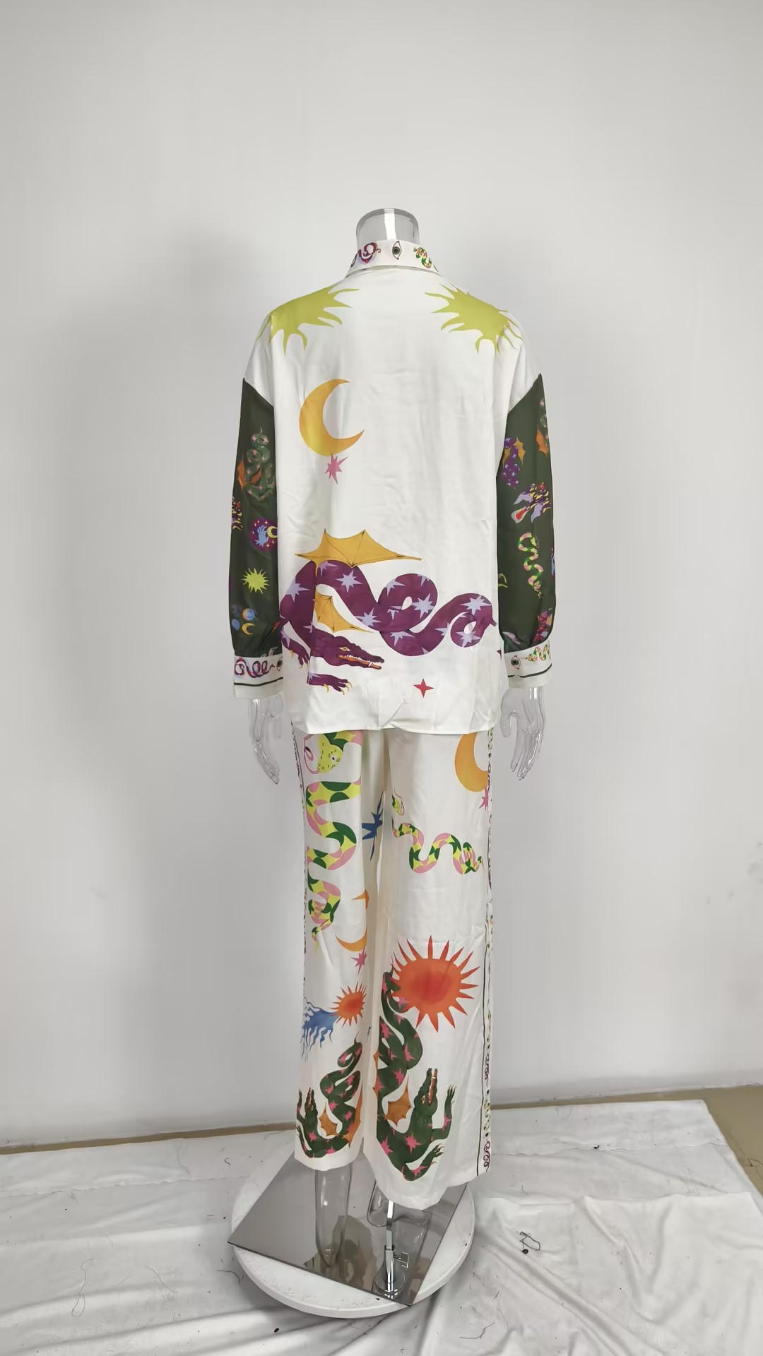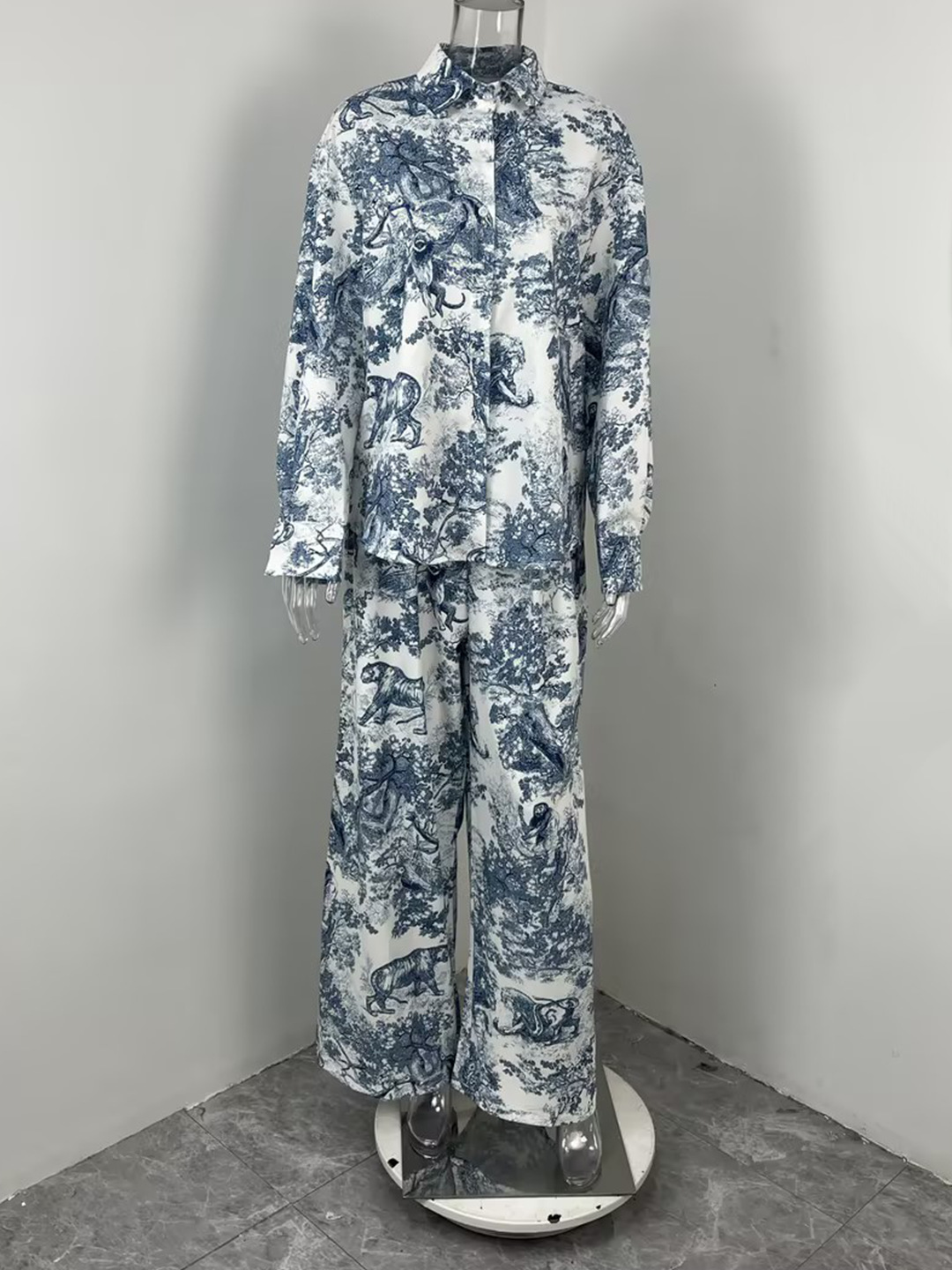 2026년 유럽 및 미국 여성복, 봄 신상품, 개성 있는 그래피티 캐주얼 라펠 셔츠, 긴팔 패션 세트
