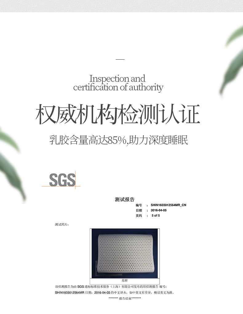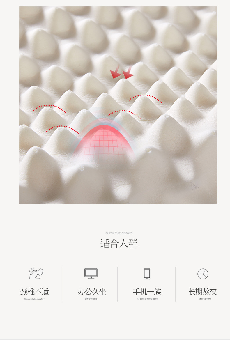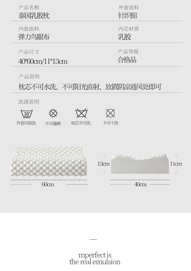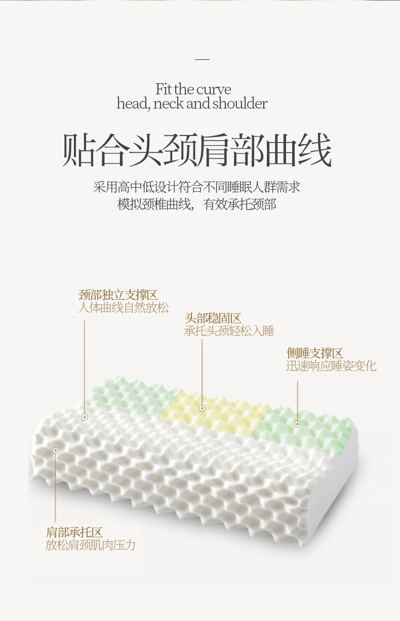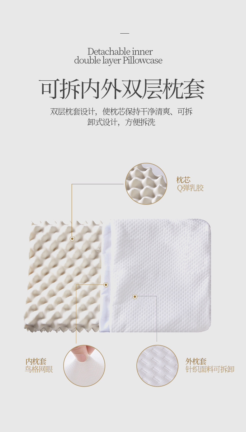 本款乳胶枕采用泰国天然乳胶,含内外枕套,柔软Q弹舒适。