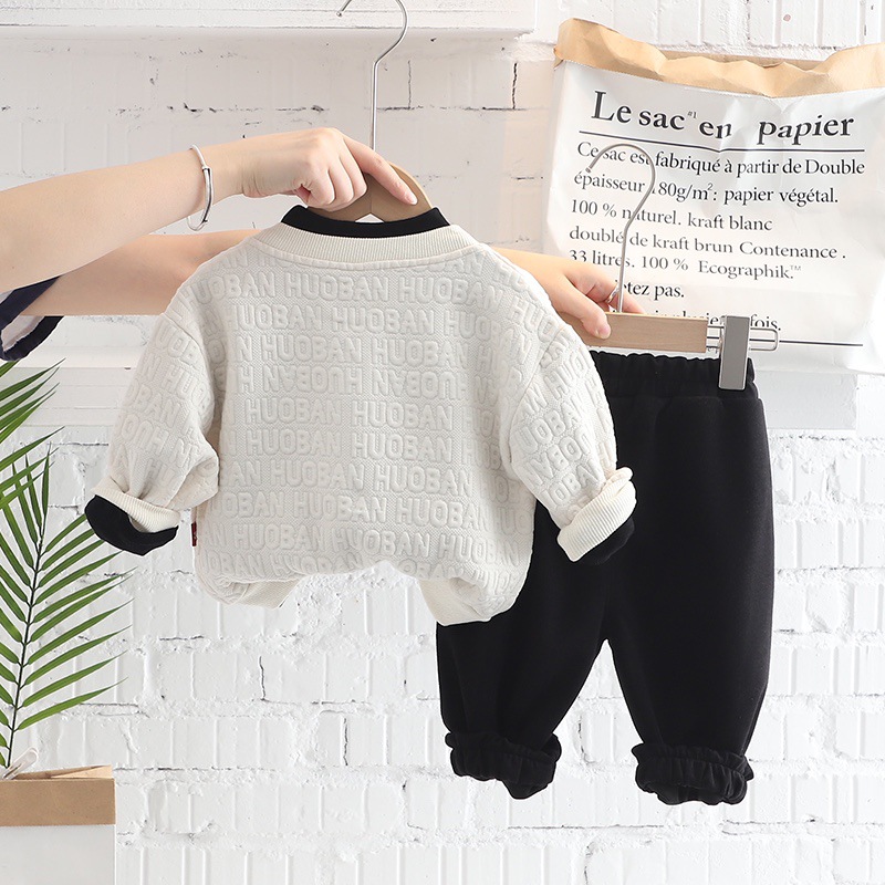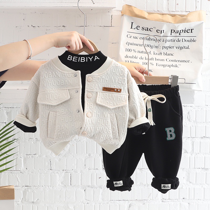 한국 소년 가을 잘 생긴 자카드 편지 코트 2022 봄과 가을 긴 소매 3 피스 세트 소스 제조 업체 도매스토어 가기