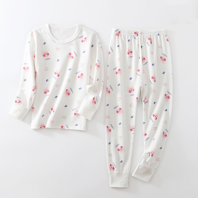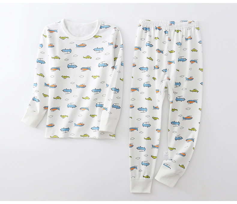 가을과 겨울 새로운 어린이 뼈없는 카테고리 순수한면 세트 소년과 소녀의 샌딩 크루 넥 가을 옷 가을 바지 아기의 가정 옷