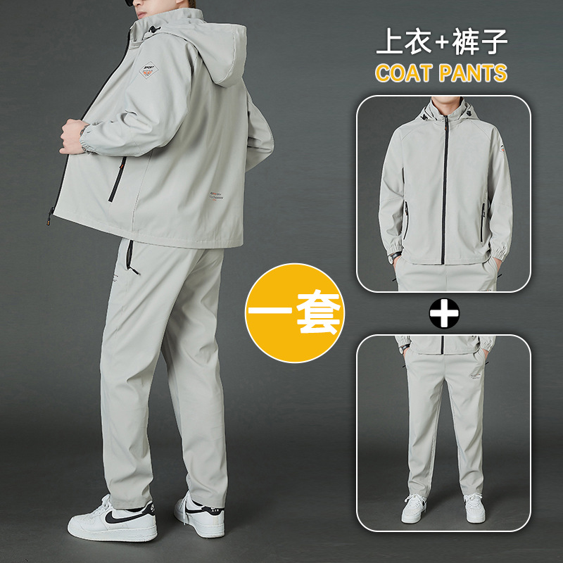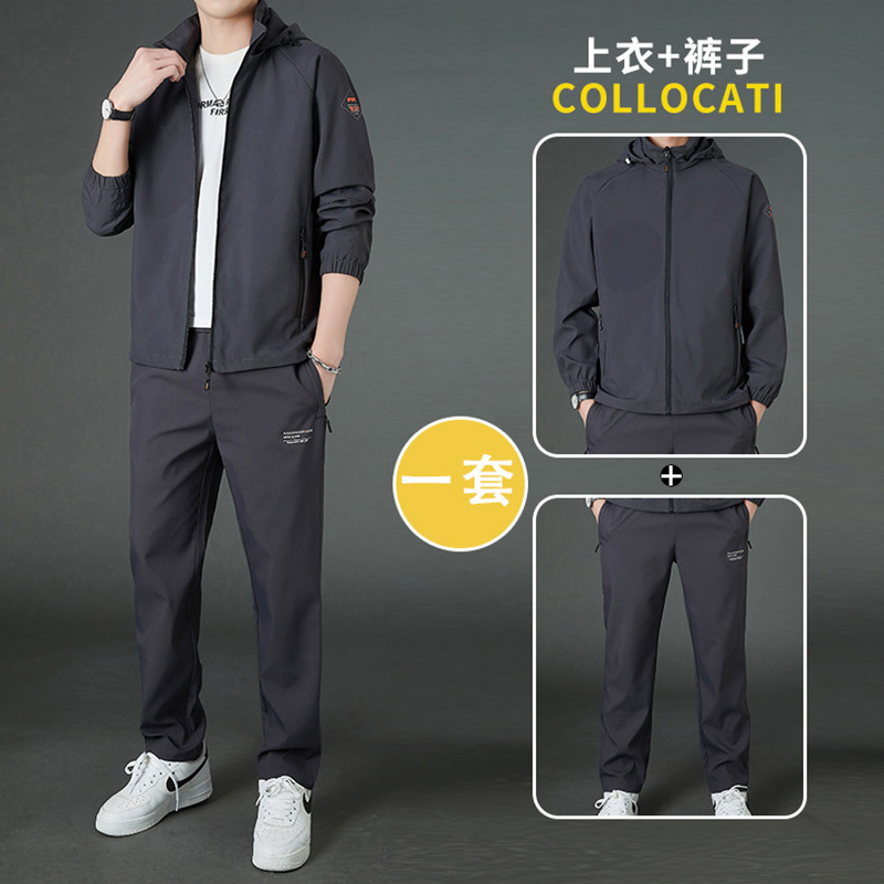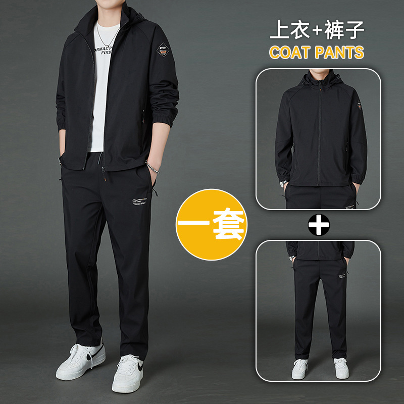 스포츠 세트 남자의 봄 가을 2023 새로운 패션 캐주얼 통기성 청소년 유행 브랜드 스포츠웨어 투피스 세트