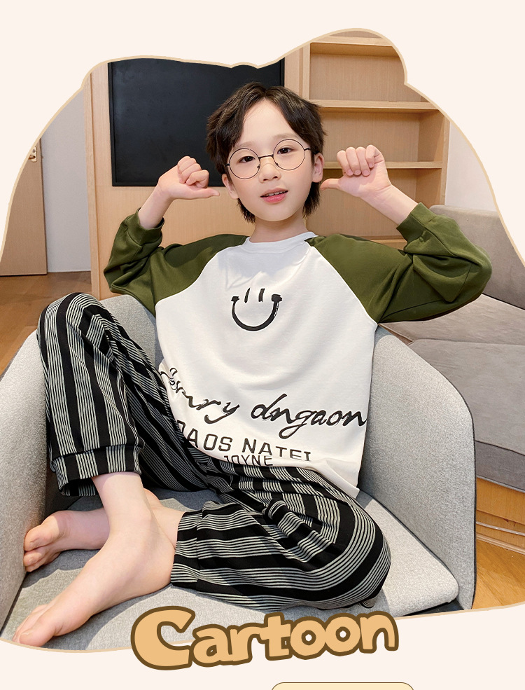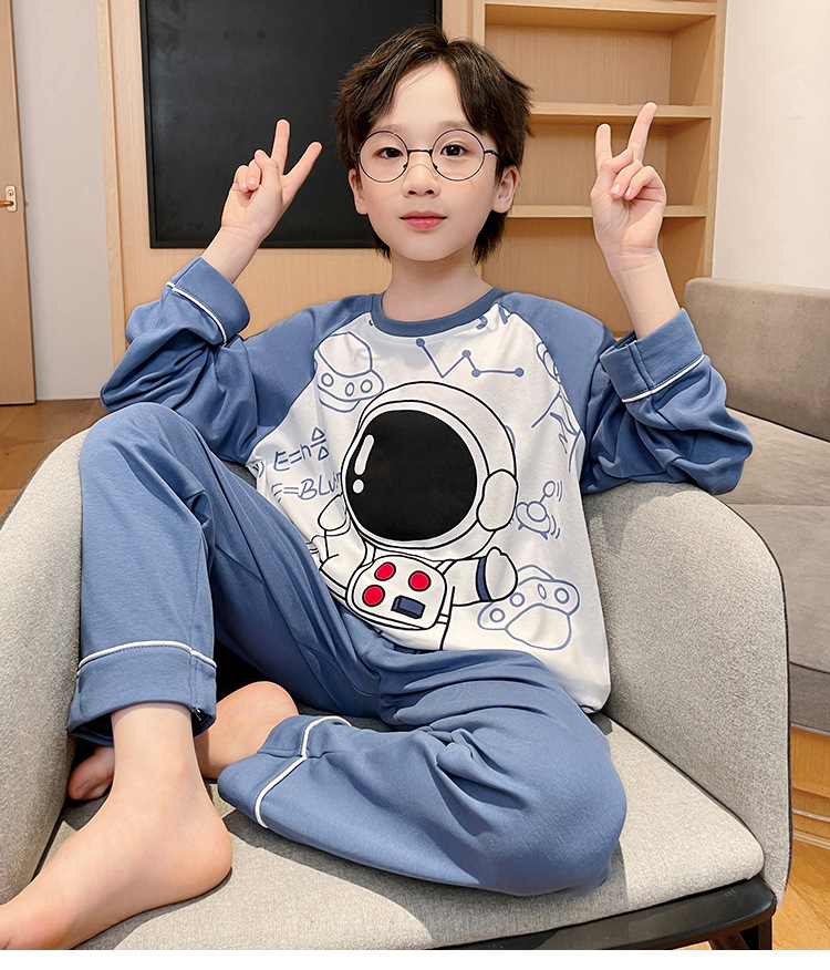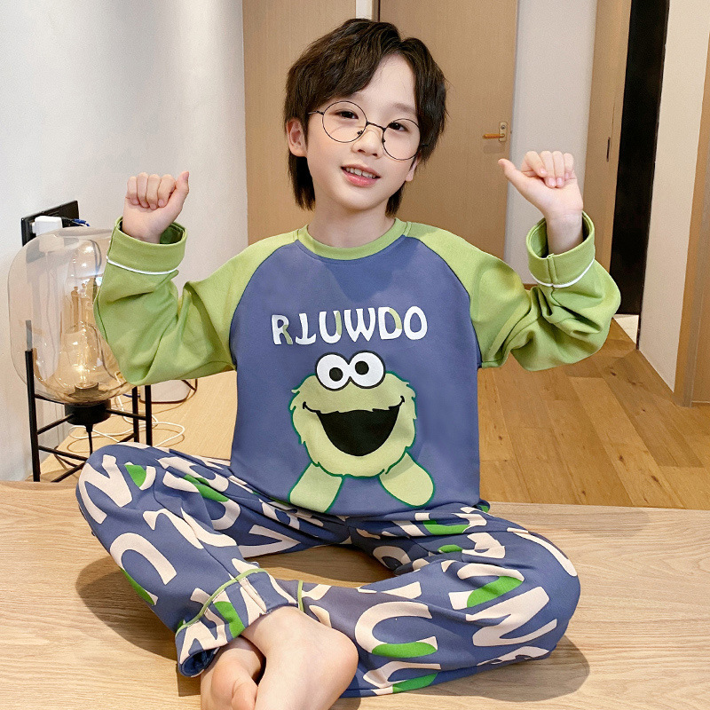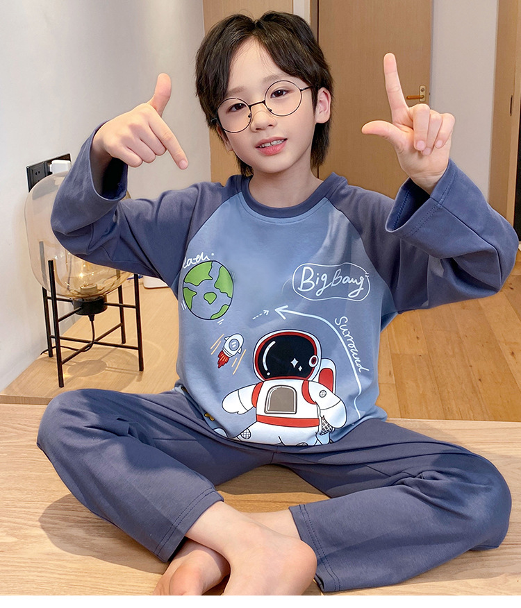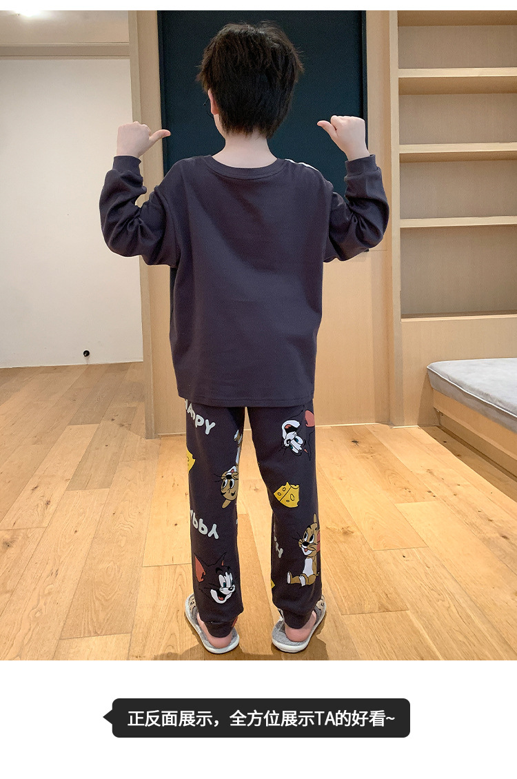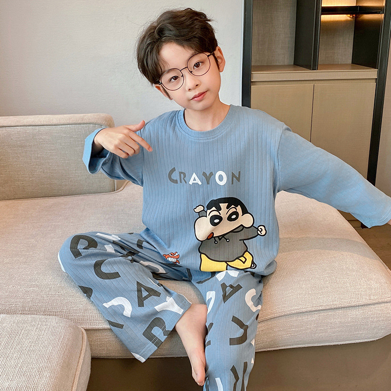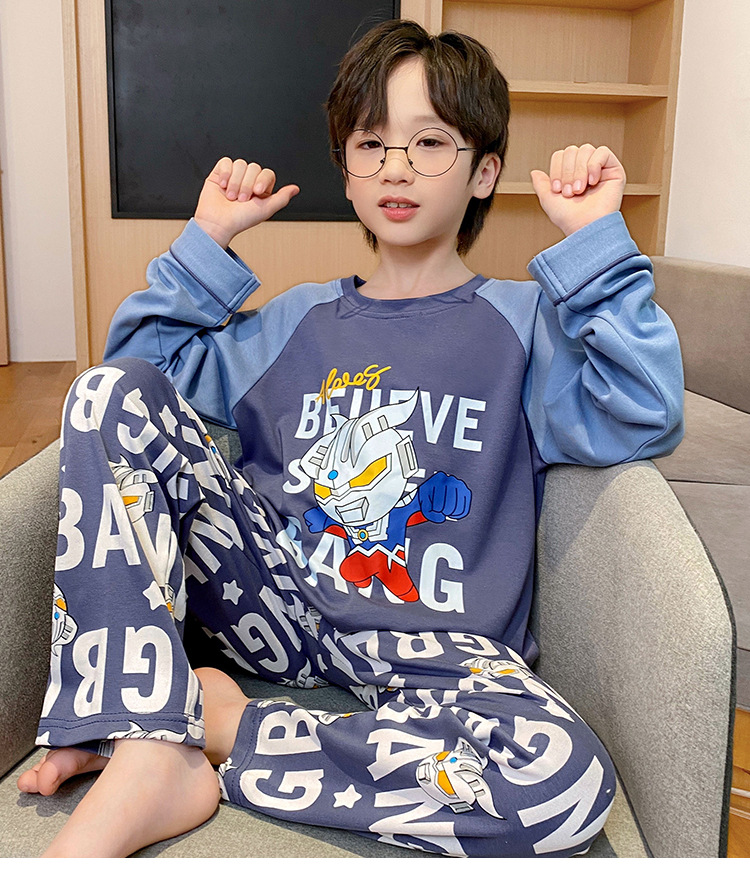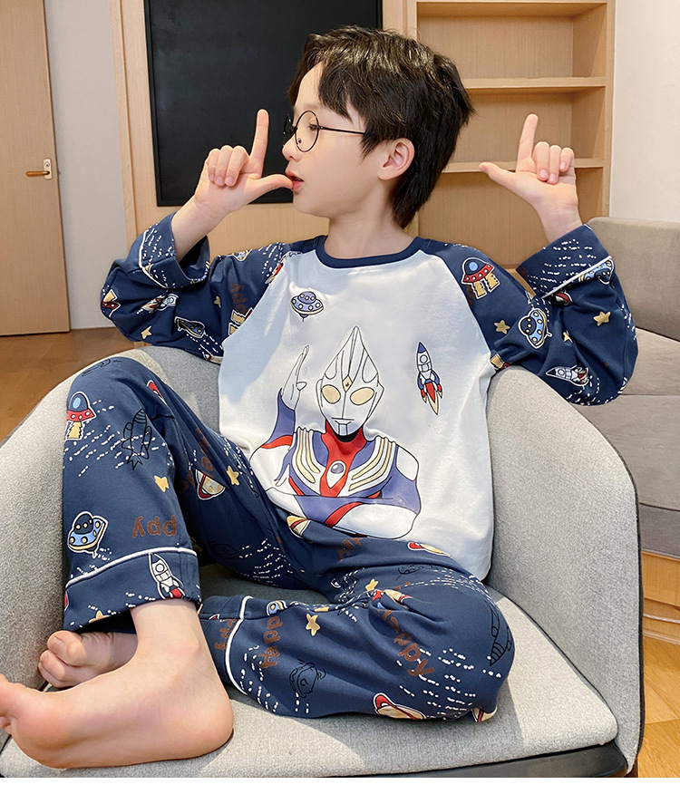 어린이 잠옷 100% 순면 긴팔 남아용 봄 가을 중대형 어린이 만화 에어컨 홈웨어 세트