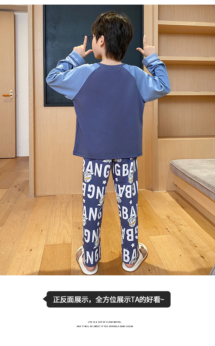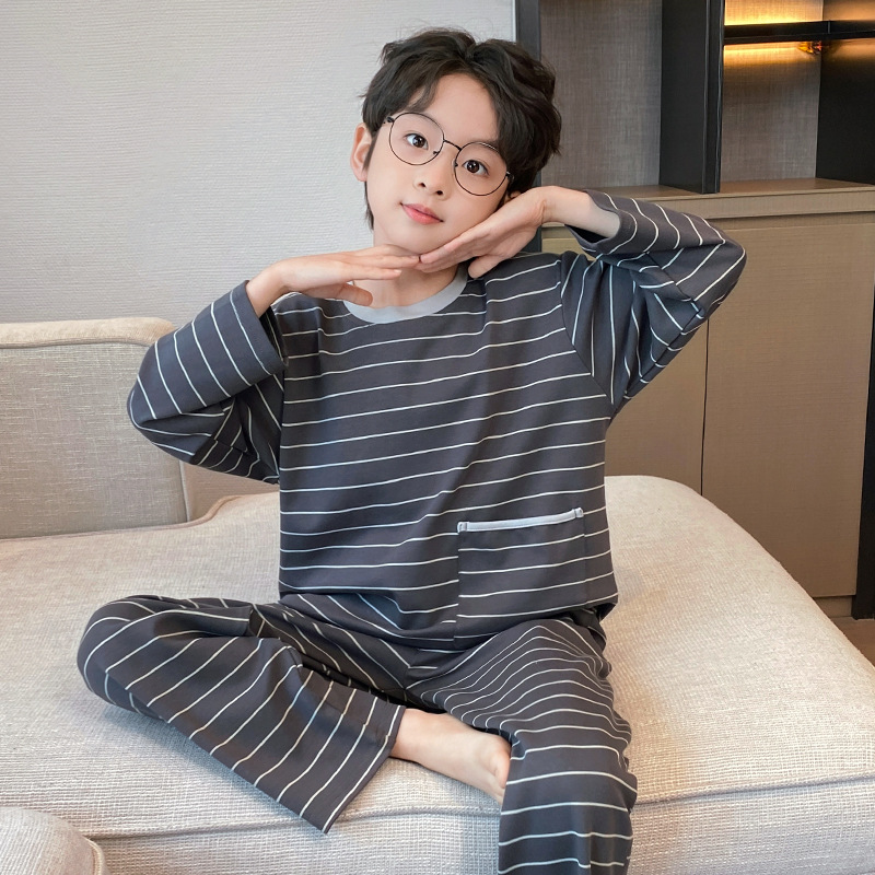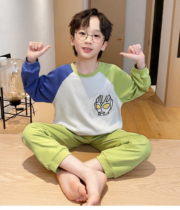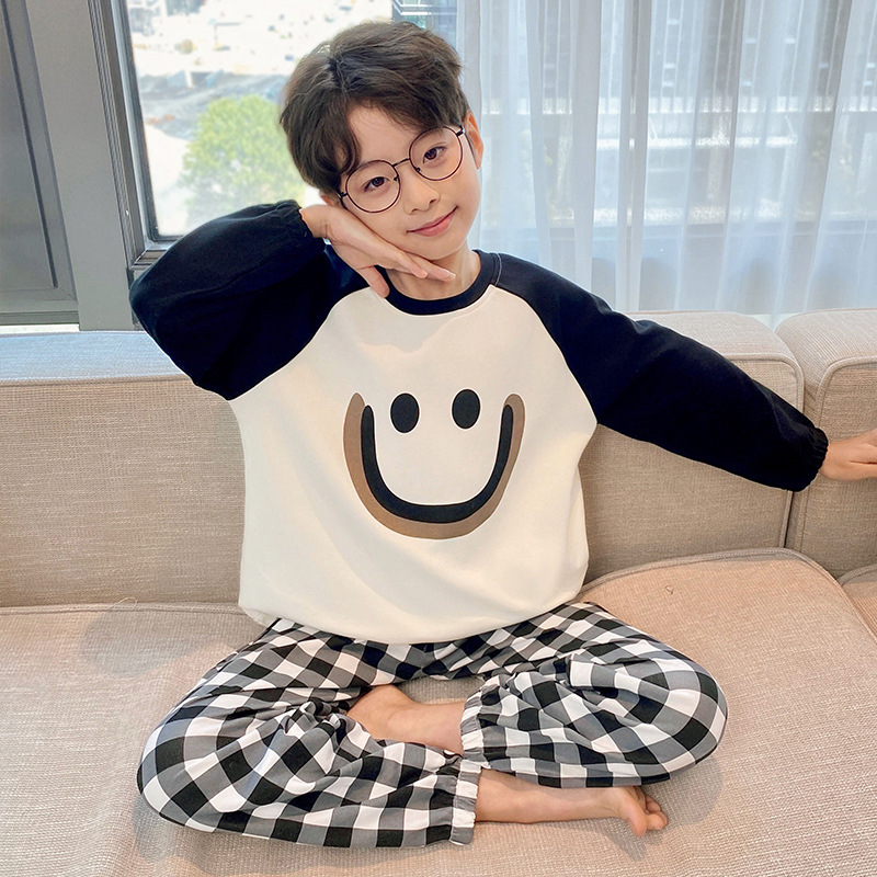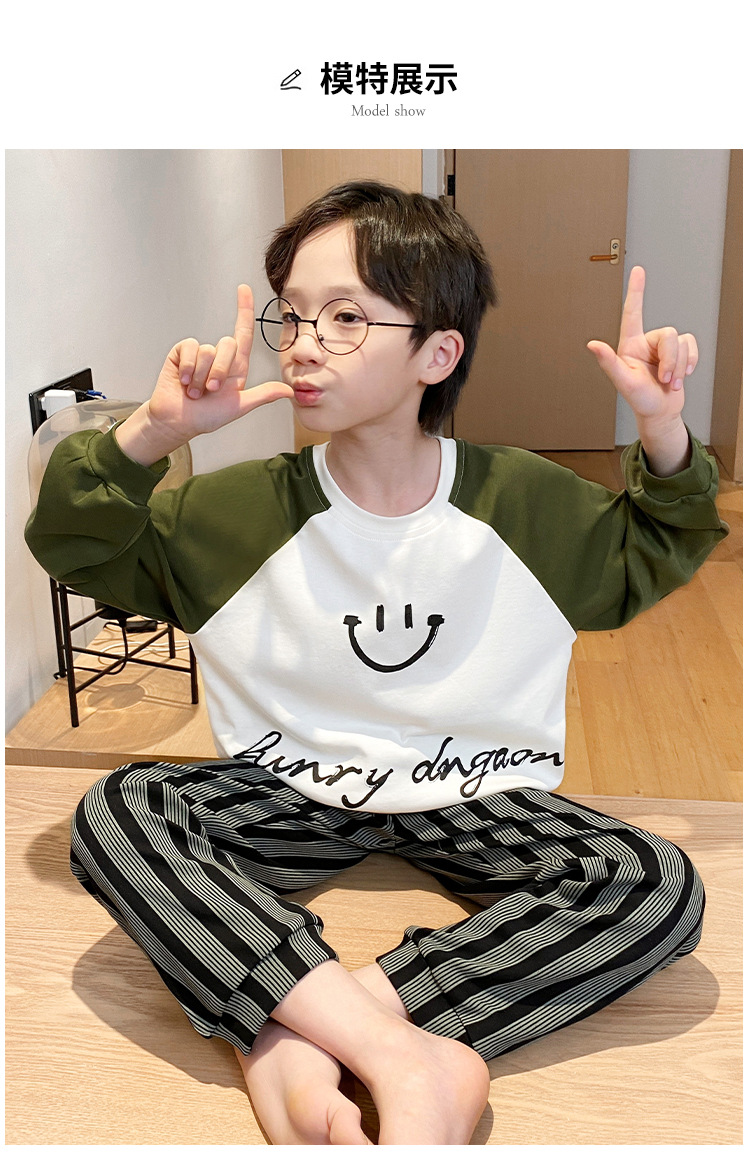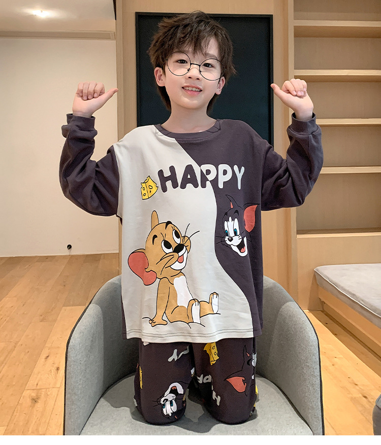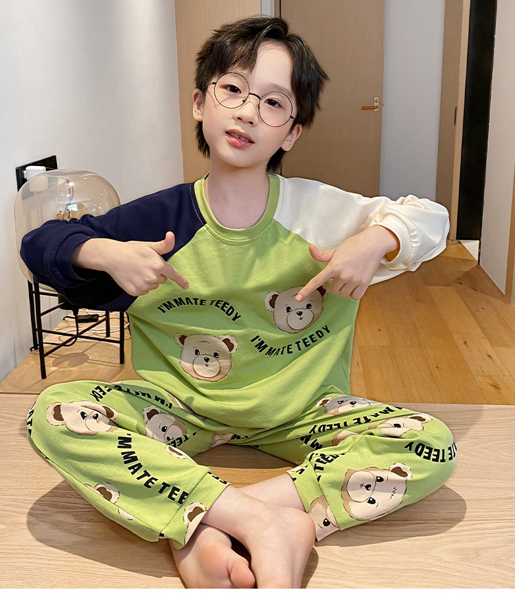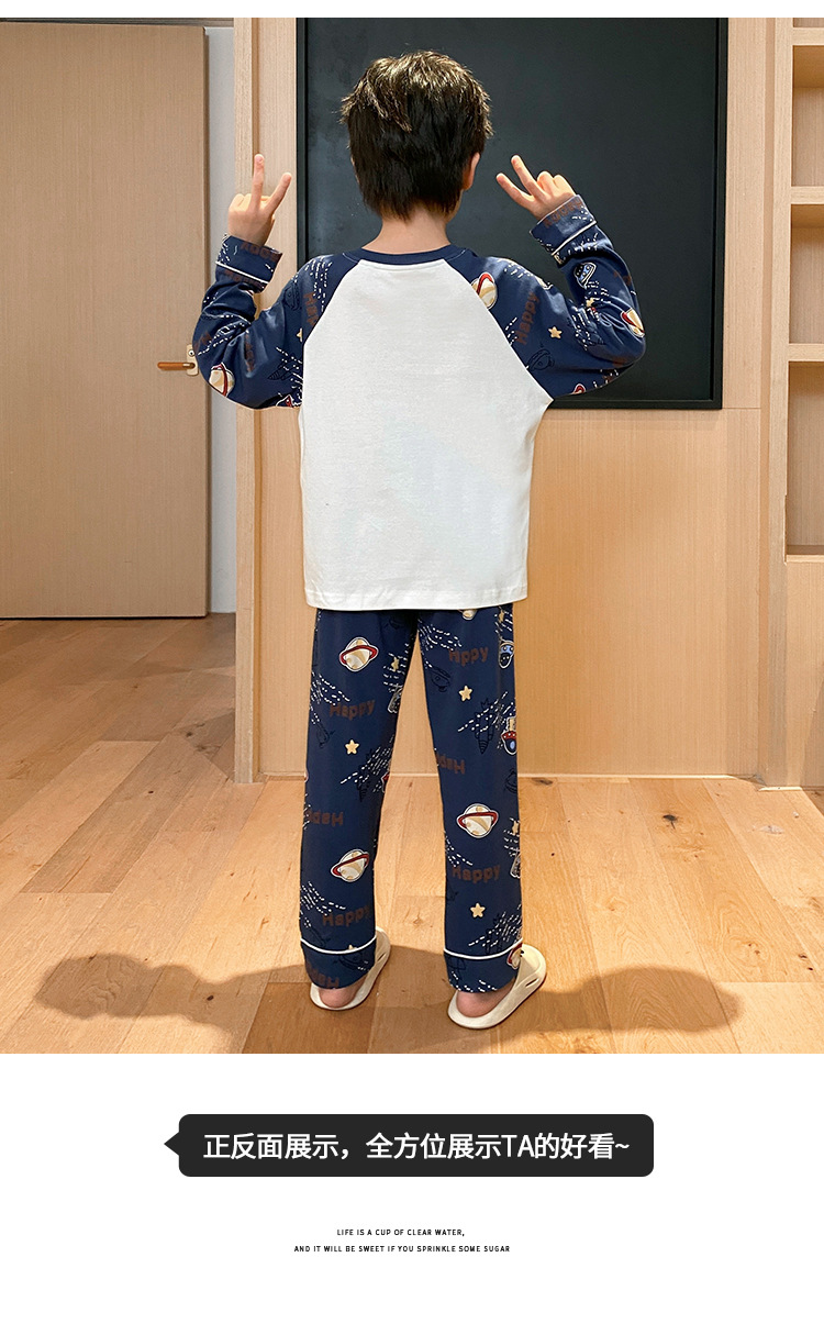 어린이 잠옷 100% 순면 긴팔 남아용 봄 가을 중대형 어린이 만화 에어컨 홈웨어 세트