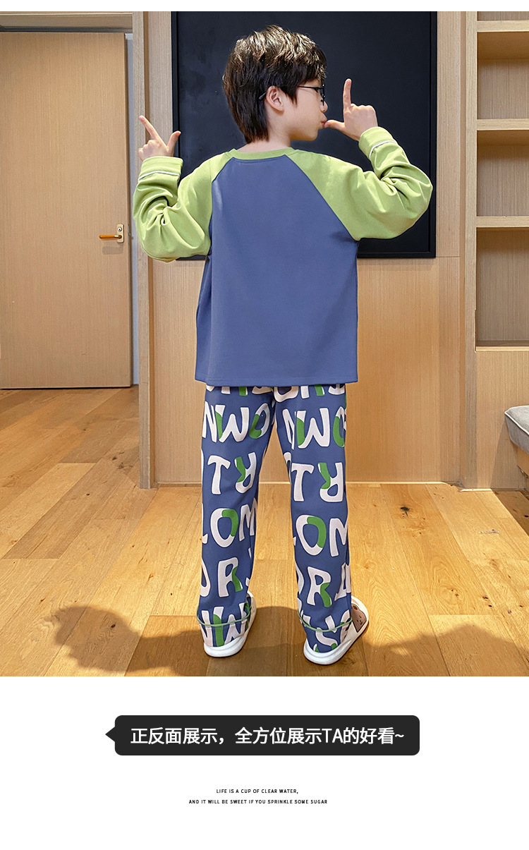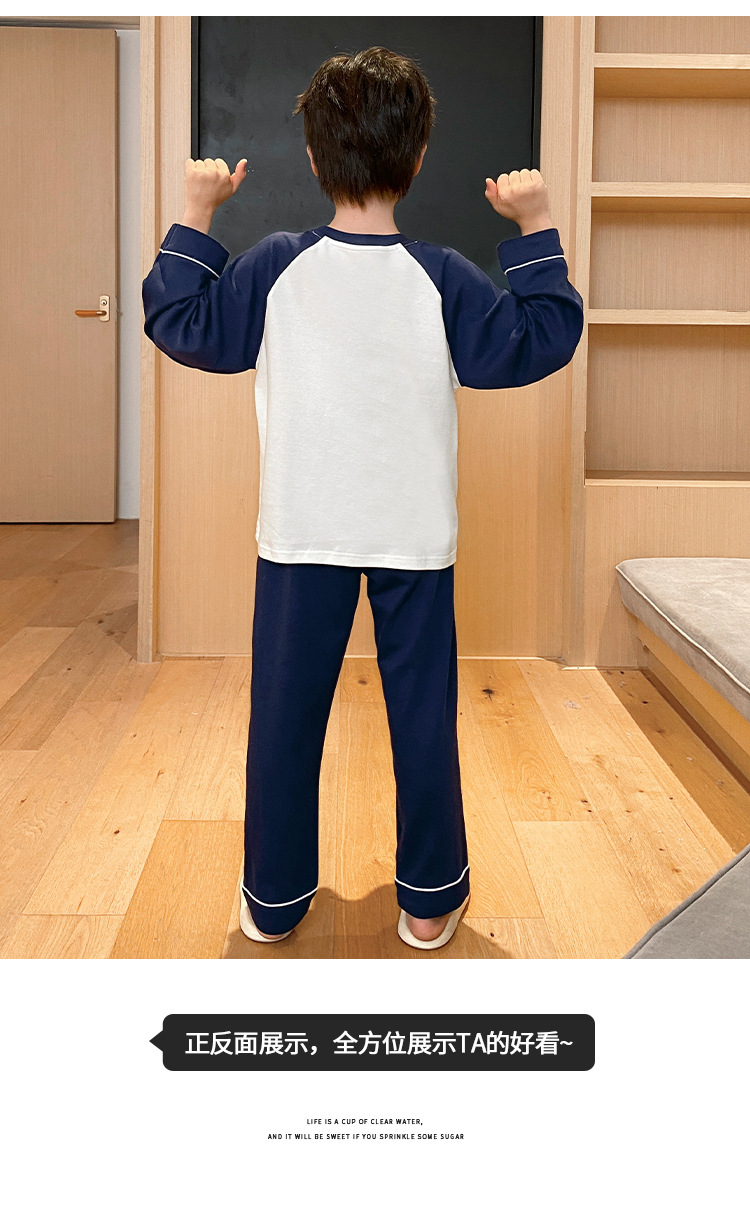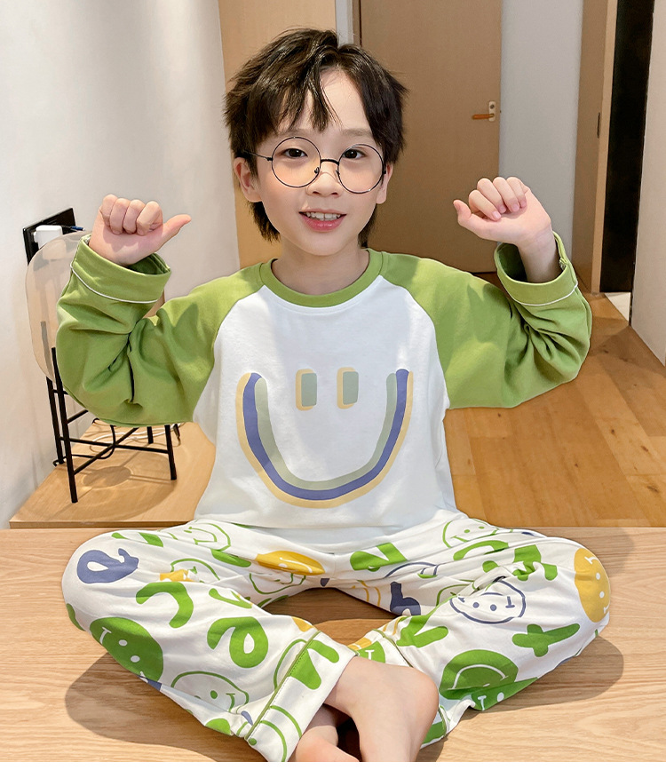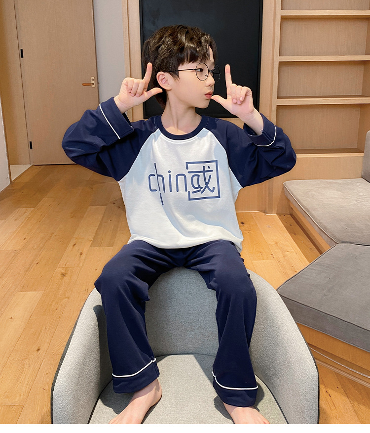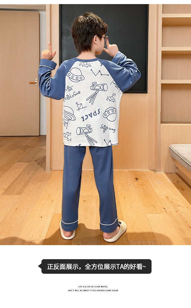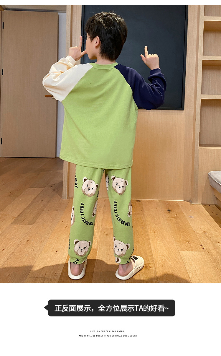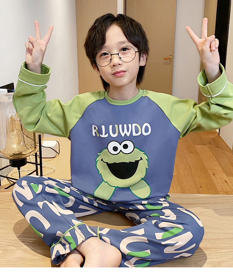 어린이 잠옷 100% 순면 긴팔 남아용 봄 가을 중대형 어린이 만화 에어컨 홈웨어 세트