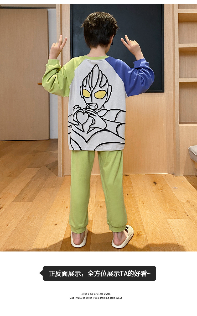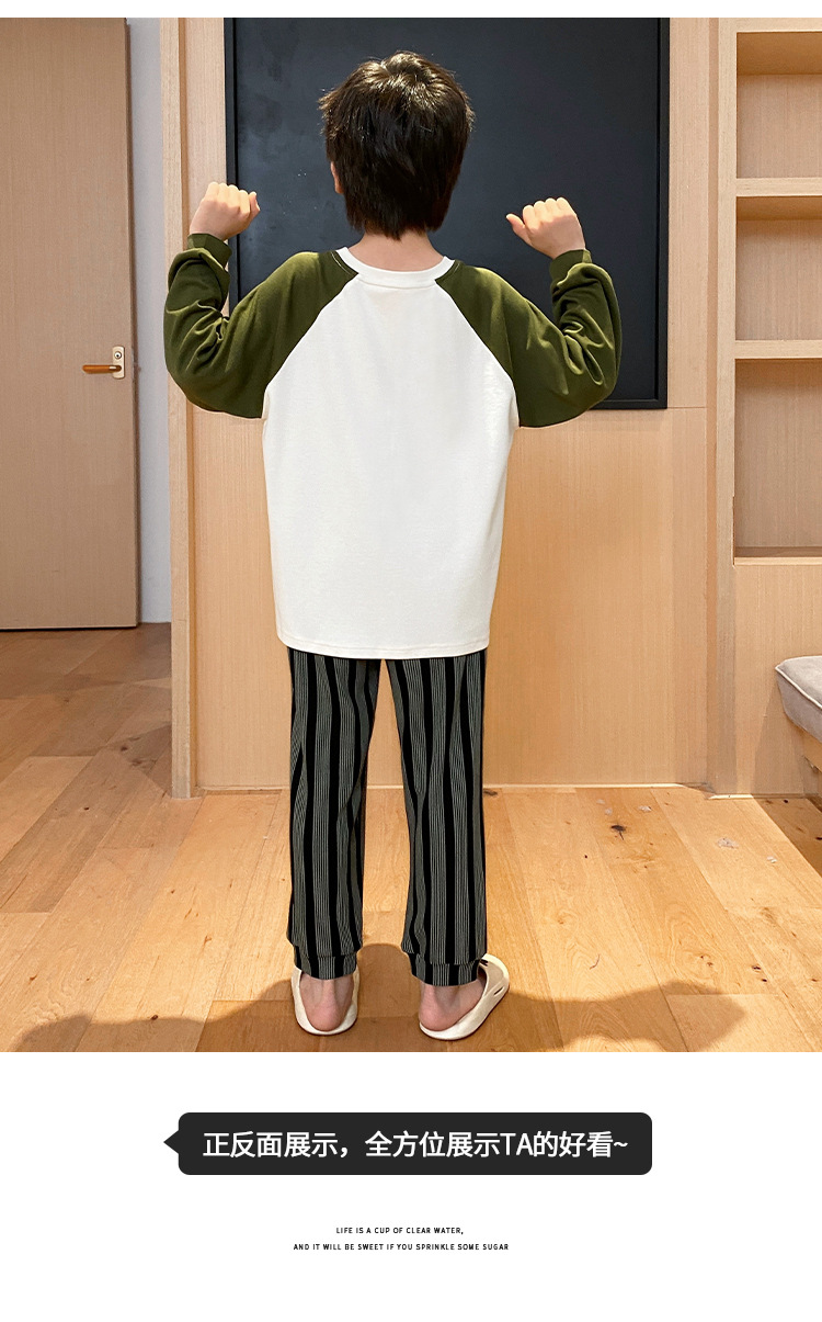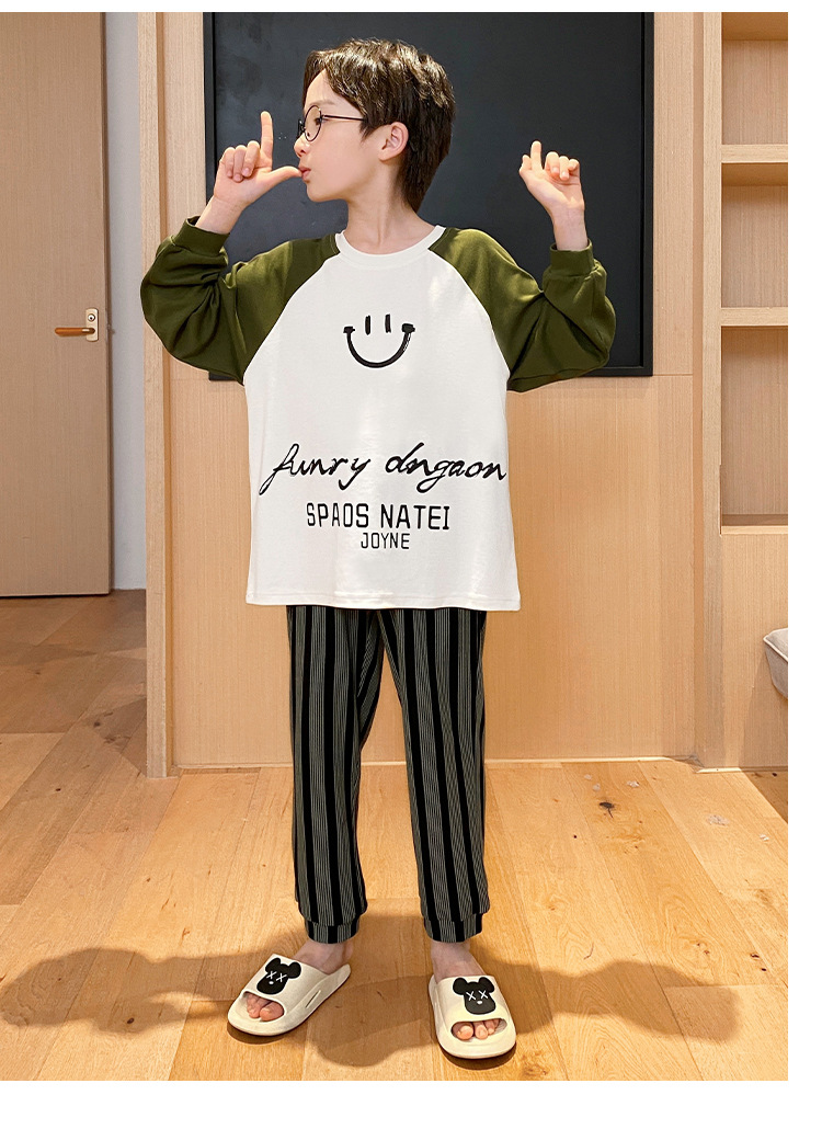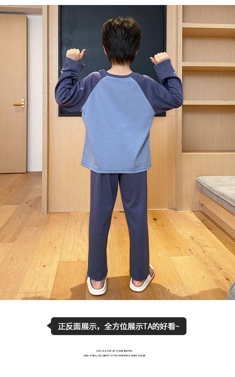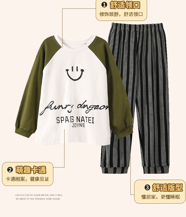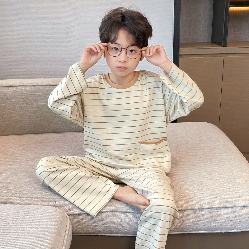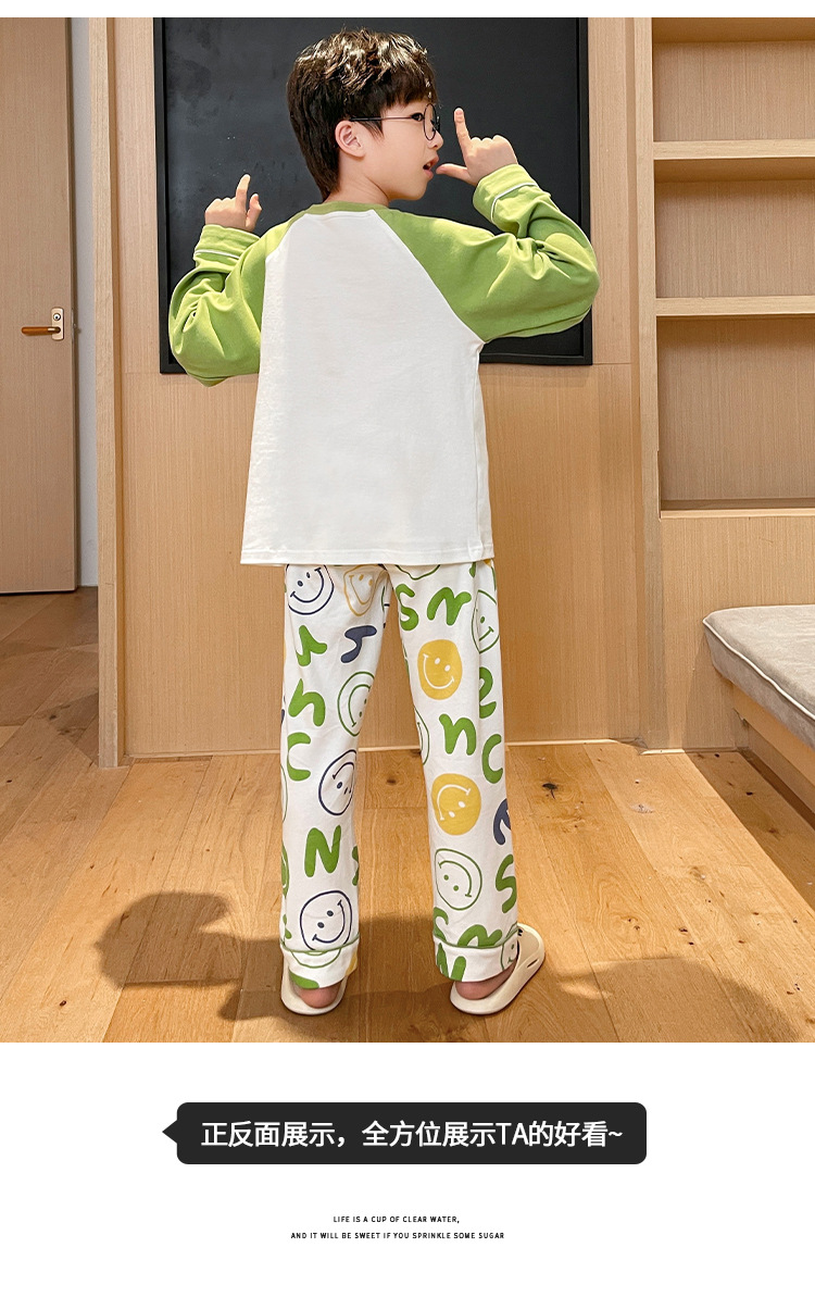 어린이 잠옷 100% 순면 긴팔 남아용 봄 가을 중대형 어린이 만화 에어컨 홈웨어 세트