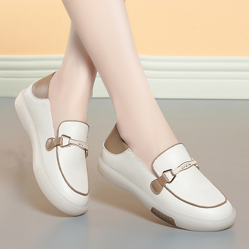 고무 밑창 어머니 신발 부드러운 밑창 부드러운 표면 편안한 여성 신발 편안한 피곤하지 않은 발 라운드 발가락 작은 가죽 신발 캐주얼 봄과 가을 싱글 레이어 신발스토어 가기