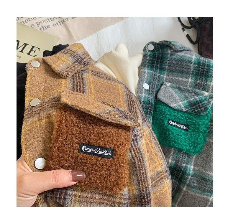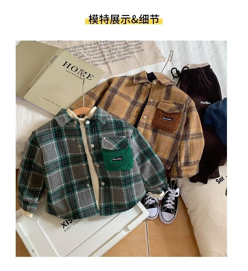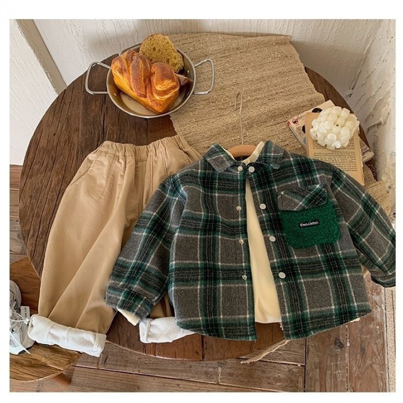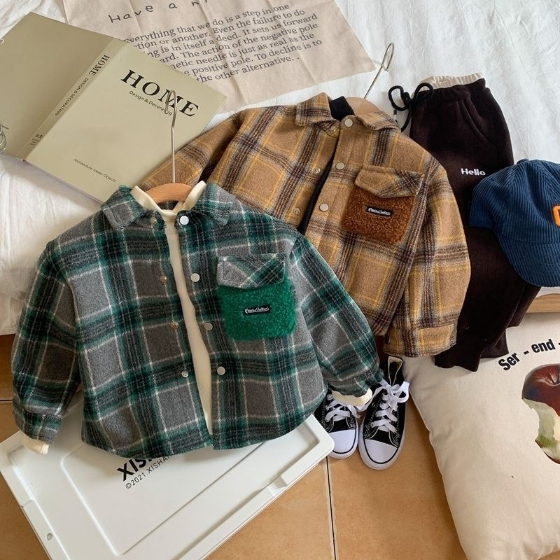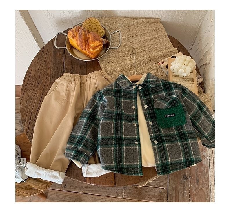 어린이 기모 셔츠 2023 가을과 겨울 새로운 남자의 중소 어린이 격자 무늬 잘 생긴 셔츠 코트 아기 두꺼운 겉옷스토어 가기