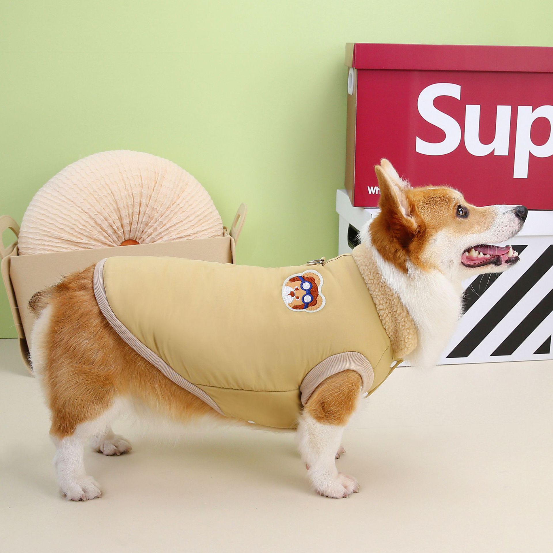 코기 소시지 큰 개 옷 가을과 겨울 새로운 짧은 다리 개 애완 동물 의류 23 코기 자수 면 패딩 옷스토어 가기