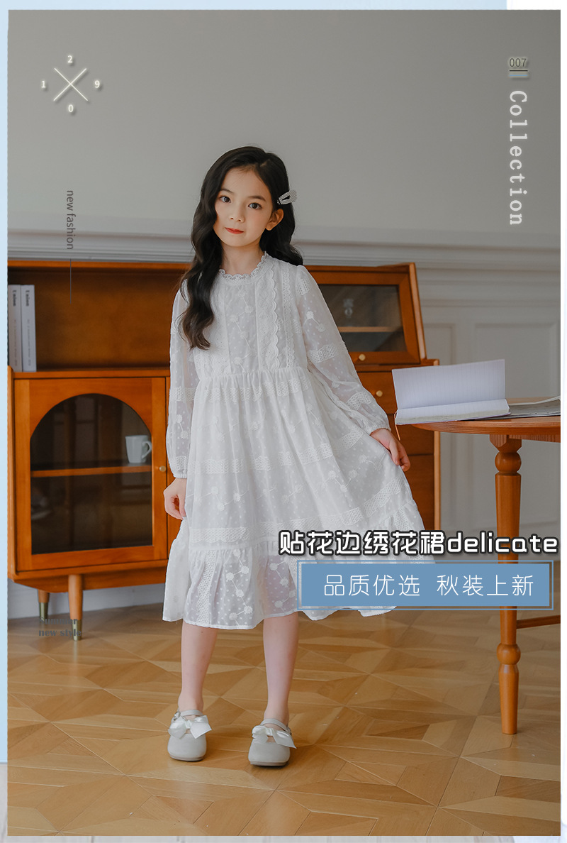 여아 가을 자수 쉬폰 원피스 신상 중대형 아동 긴팔 공주 드레스 소녀 요정 드레스 원피스 도매스토어 가기