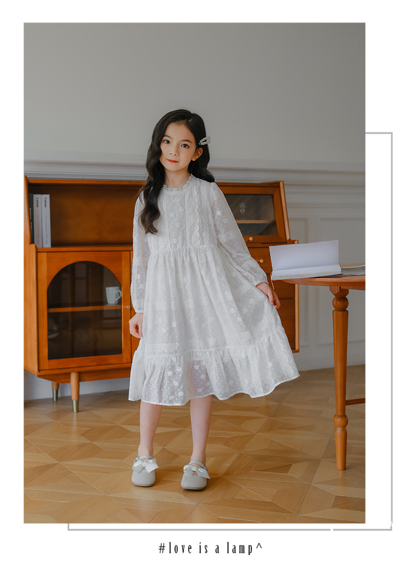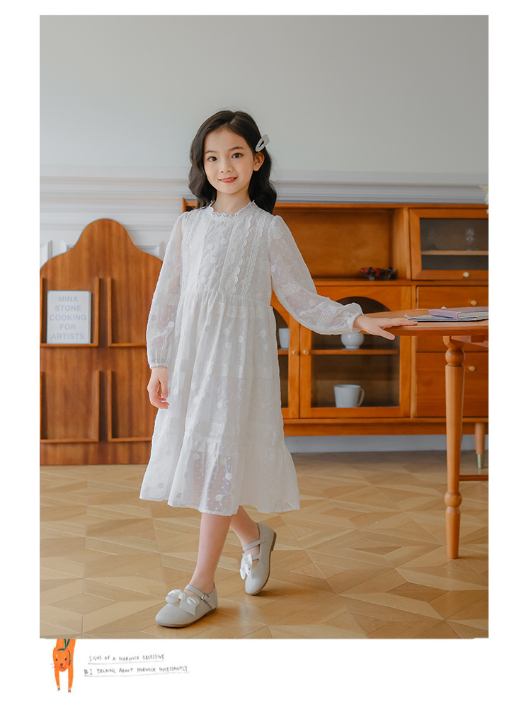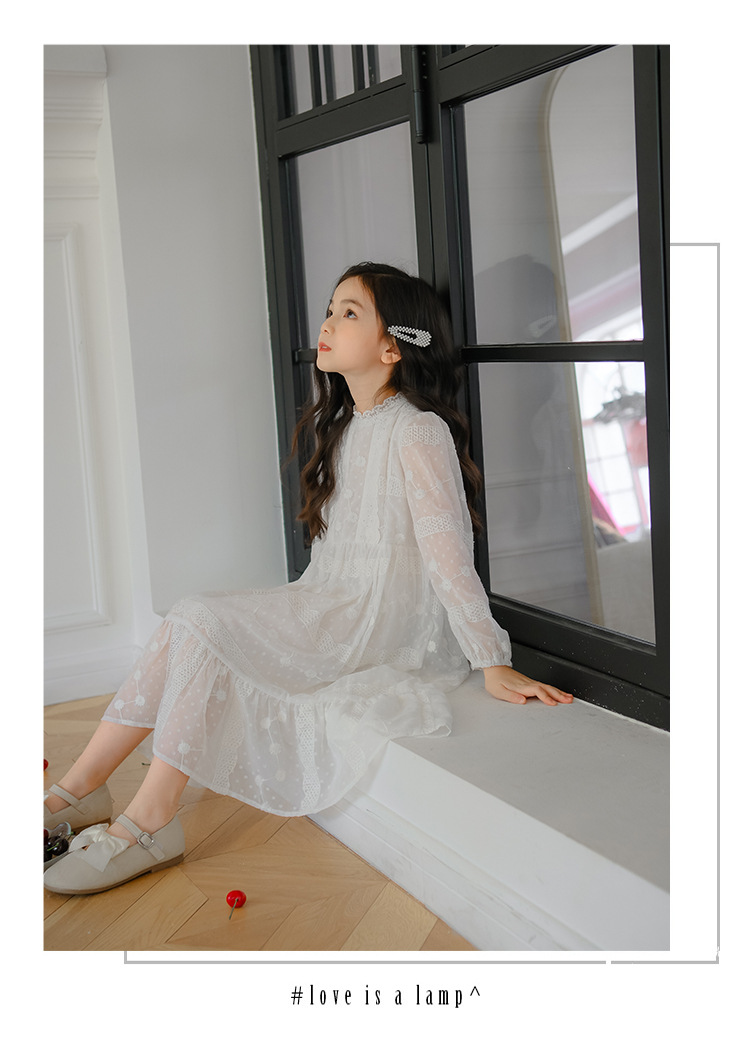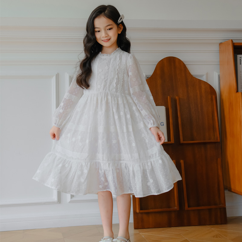 여아 가을 자수 쉬폰 원피스 신상 중대형 아동 긴팔 공주 드레스 소녀 요정 드레스 원피스 도매
