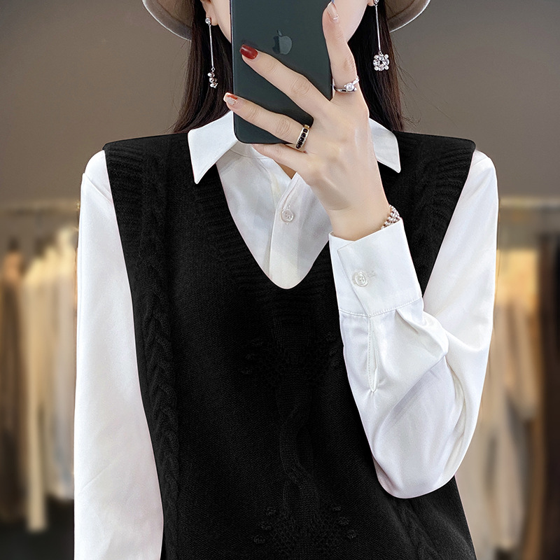 앤디 벨벳 V-넥 스웨터 조끼 여성의 가을과 겨울 유행 모든 매치 민소매 조끼 헤비 자카드 베이스 탑스토어 가기