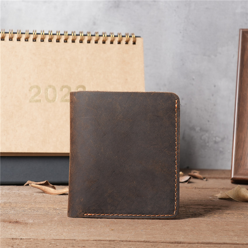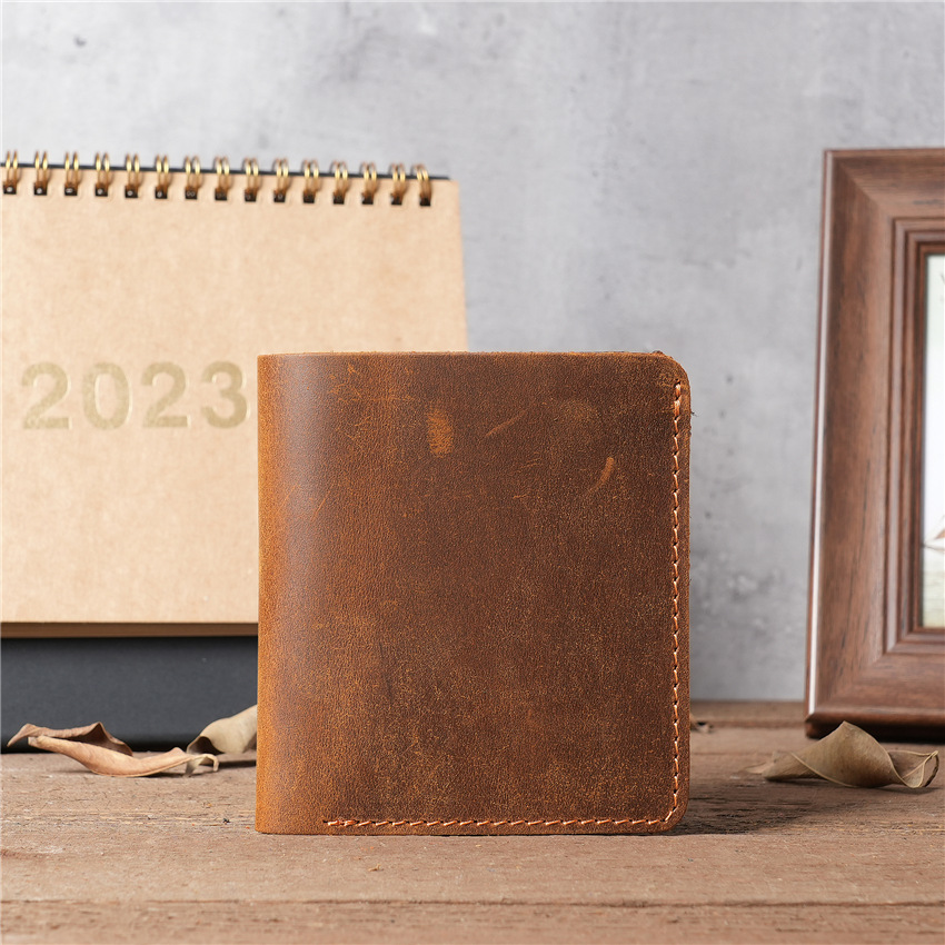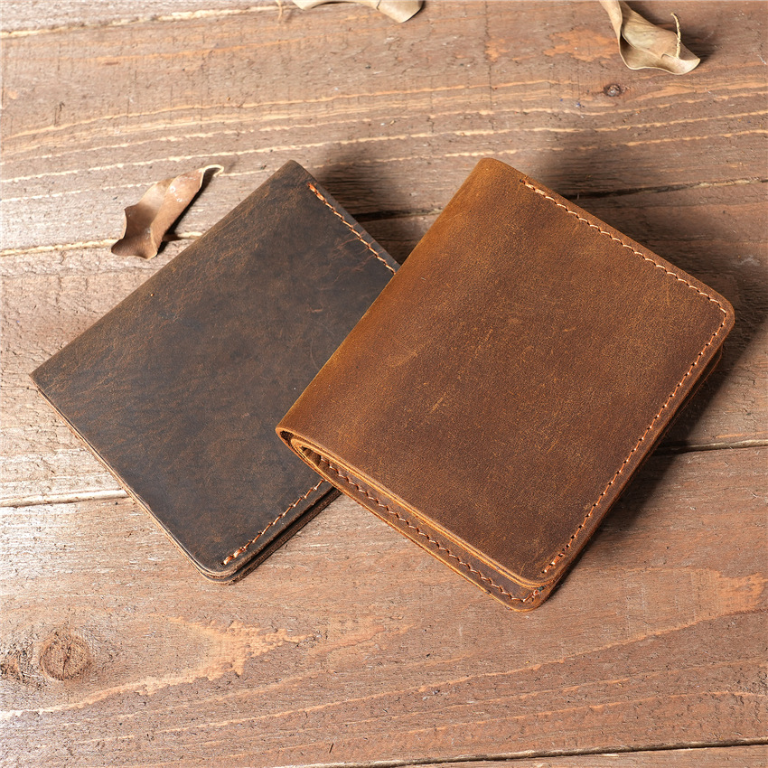 1092 소년과 소녀 심플 스타일 트렌디 한 지갑 지갑 지갑 빈티지 미친 말 가죽 진짜 소가죽 학생 지갑 대외 무역 공장스토어 가기