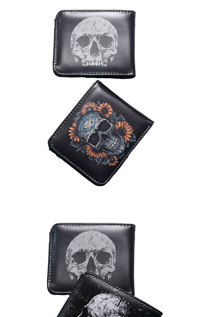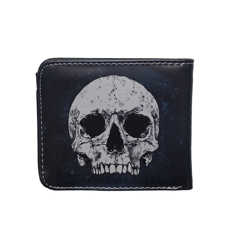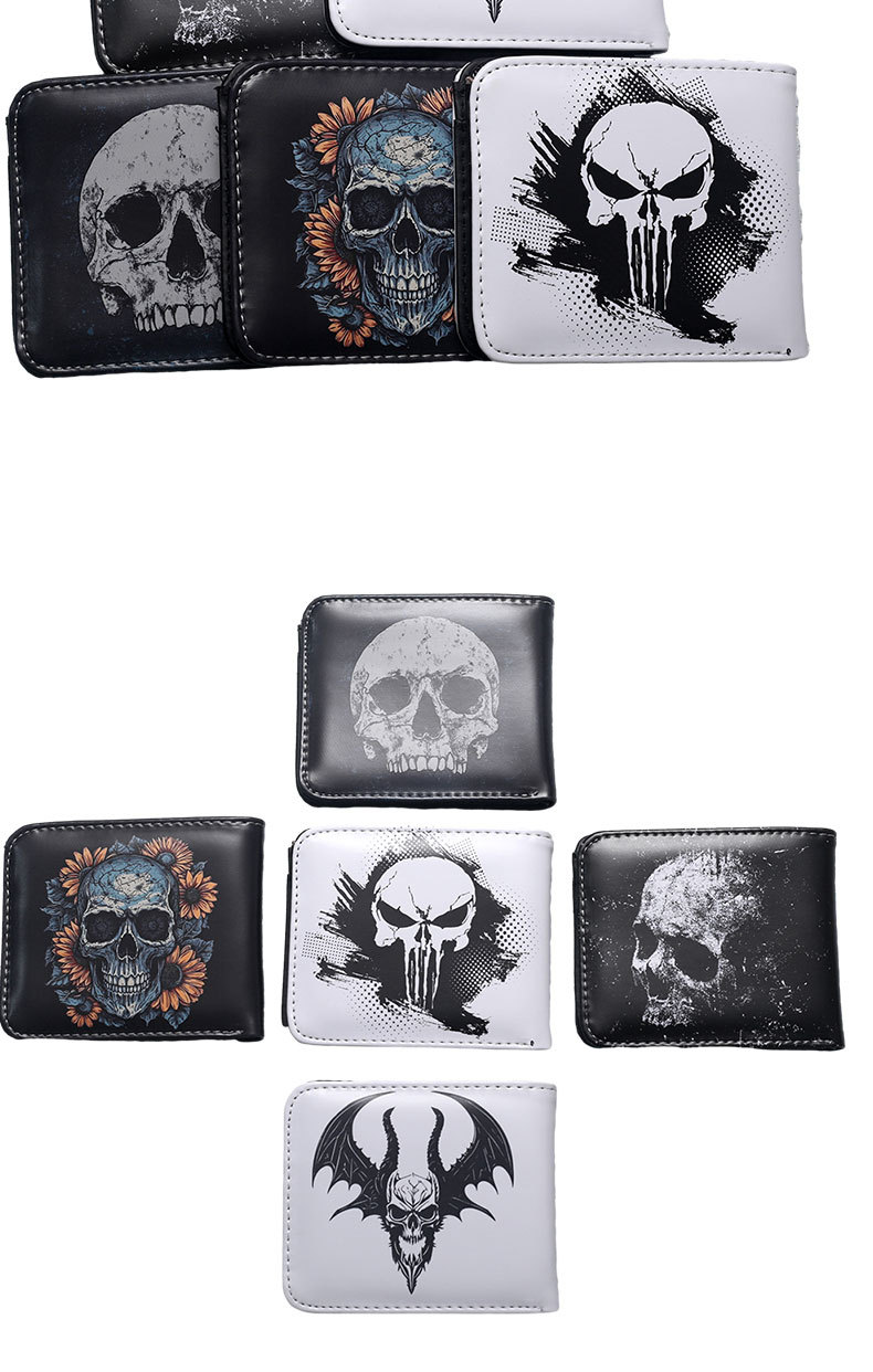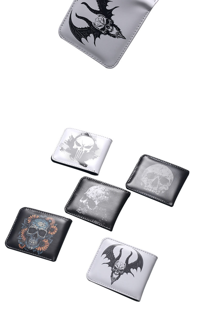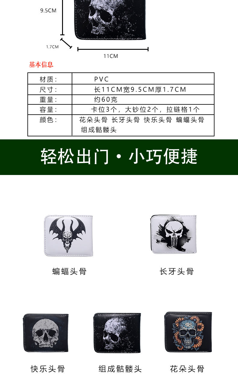 크로스 보더 독점 지갑 박쥐 해골 짧은 지갑 빈티지 해골 프린트 남성과 여성의 지퍼 동전 지갑